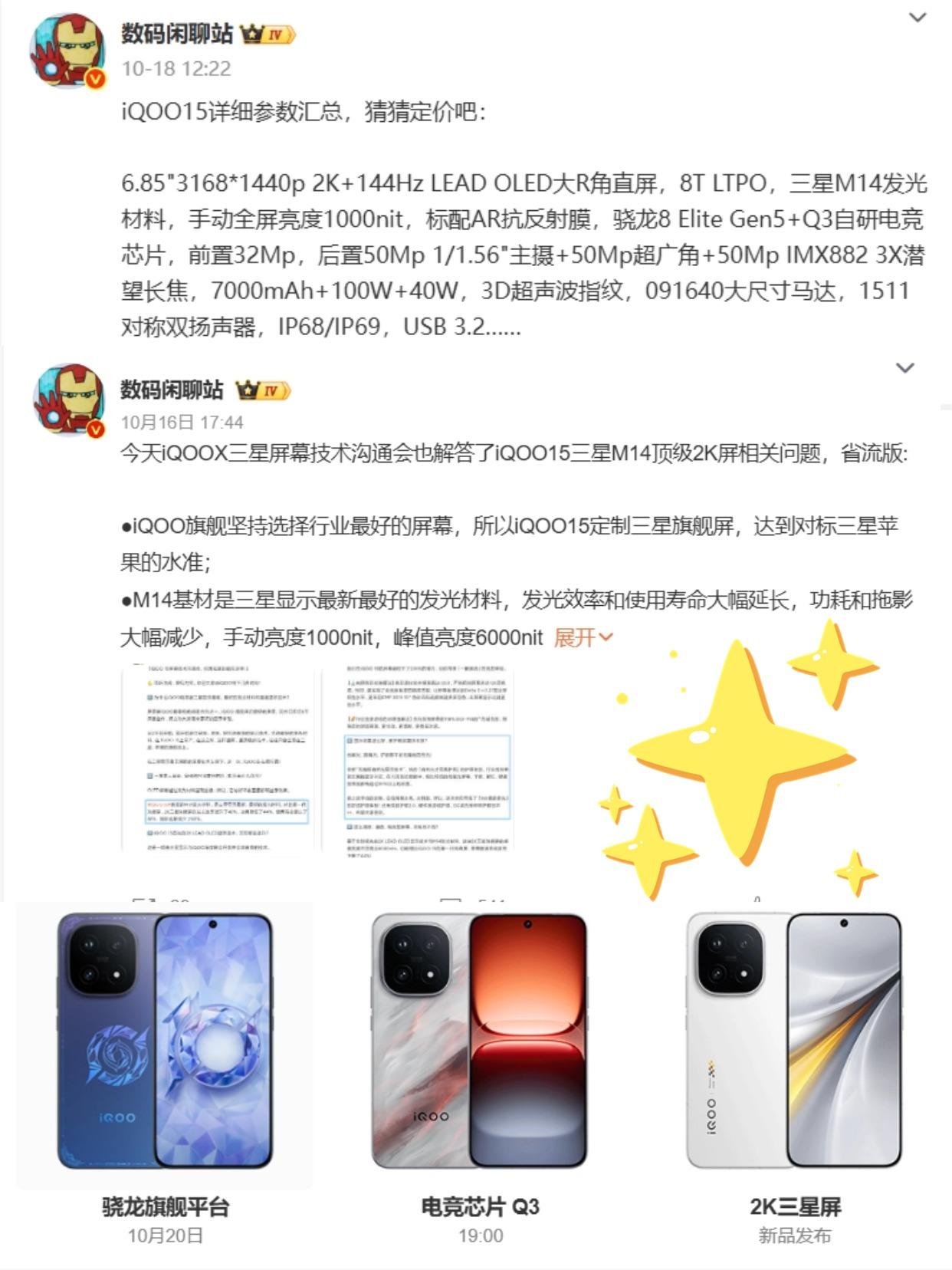 好几年前就在吹无2K不旗舰,看了今年好几款旗舰机几乎都是用的1.5K屏幕... 对比之下,iQOO 15显得有诚意多了,安排上了一块三星M14发光材料2K 144Hz屏幕,显示素质在同档产品应该是找不到对手了。加上骁龙8 Elite Gen5+Q3自研电竞芯片,而且外围配置也都没啥短板,大家觉得卖多少合适呢?