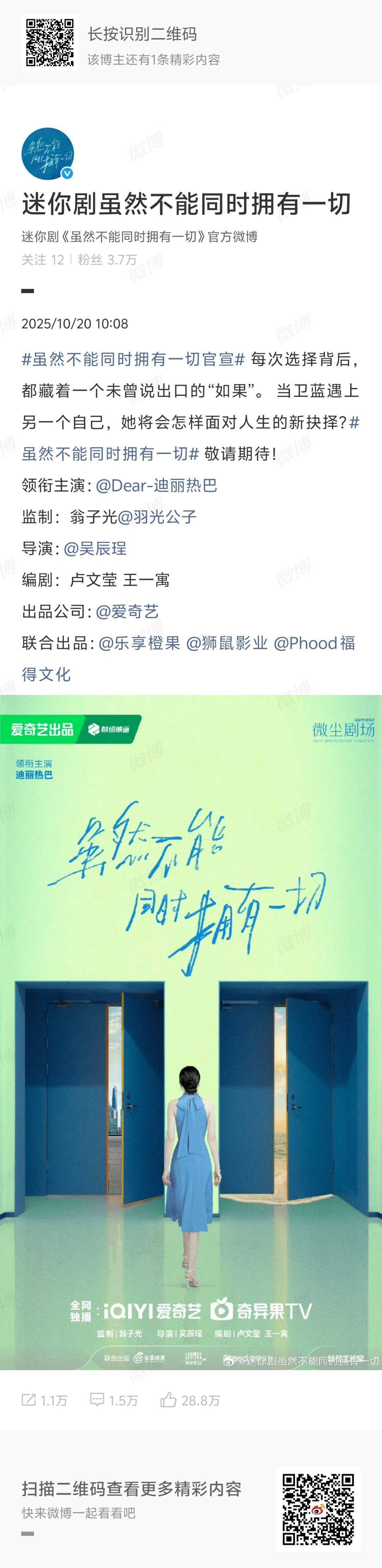 迪丽热巴《虽然不能同时拥有一切》官宣阵容