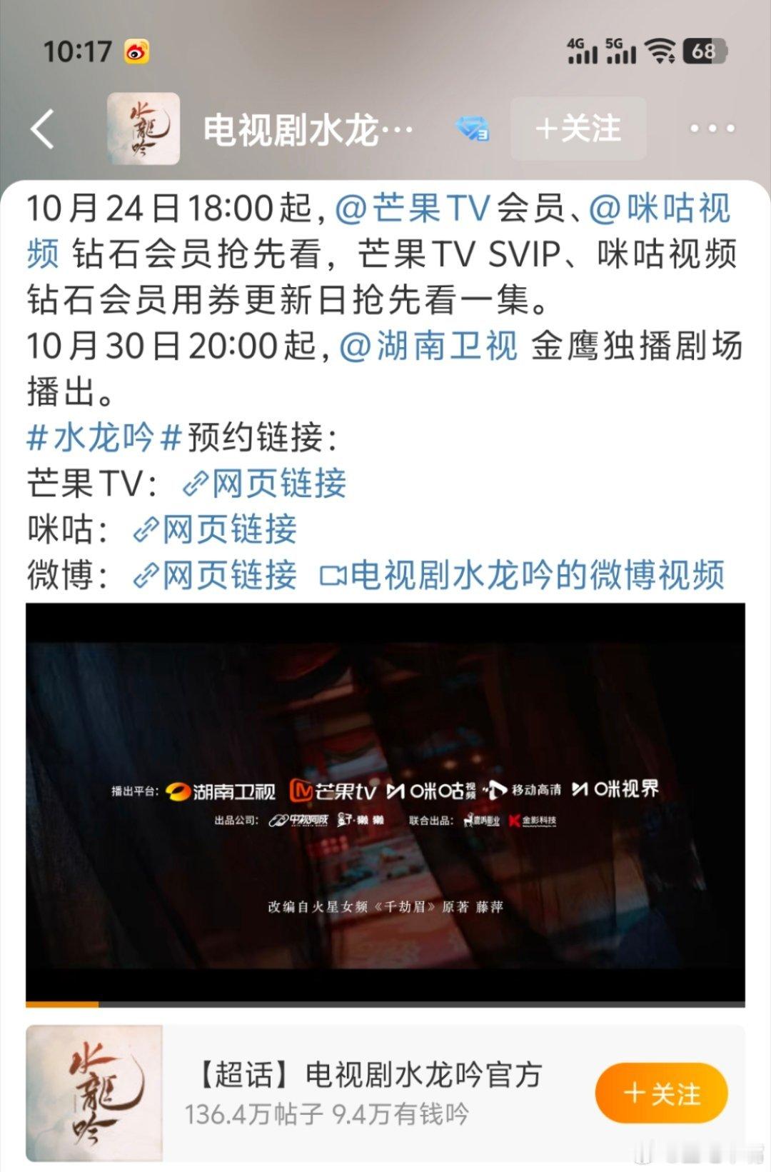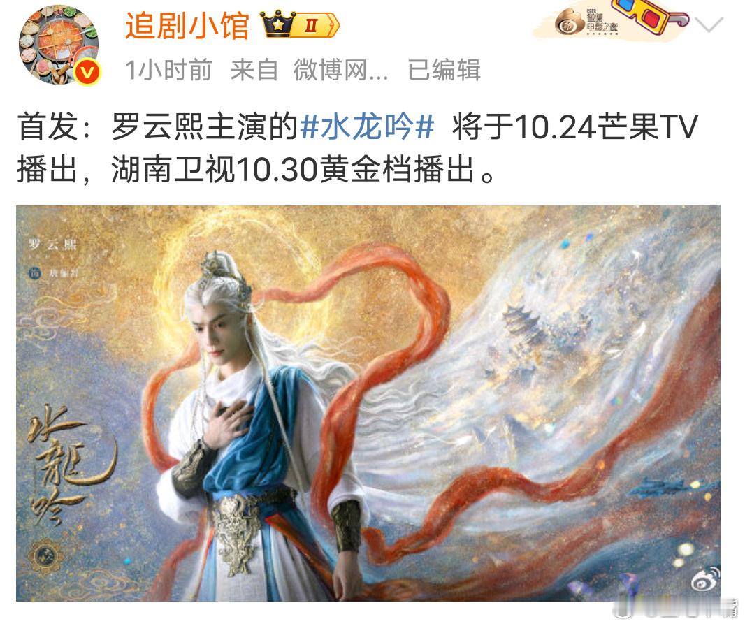 水龙吟定档1024追剧小馆还是很准的!恭喜定档!罗云熙《水龙吟》10月24日芒果TV18:00播出,10月30日湖南卫视20:00播出!敬请期待!