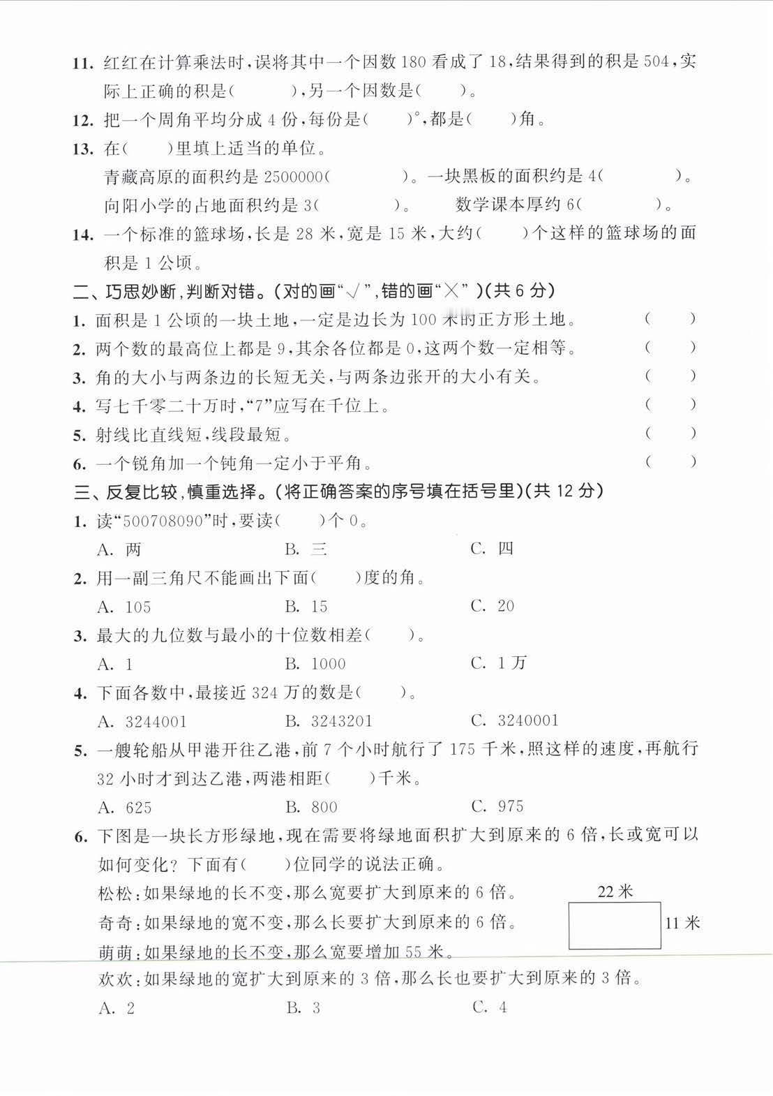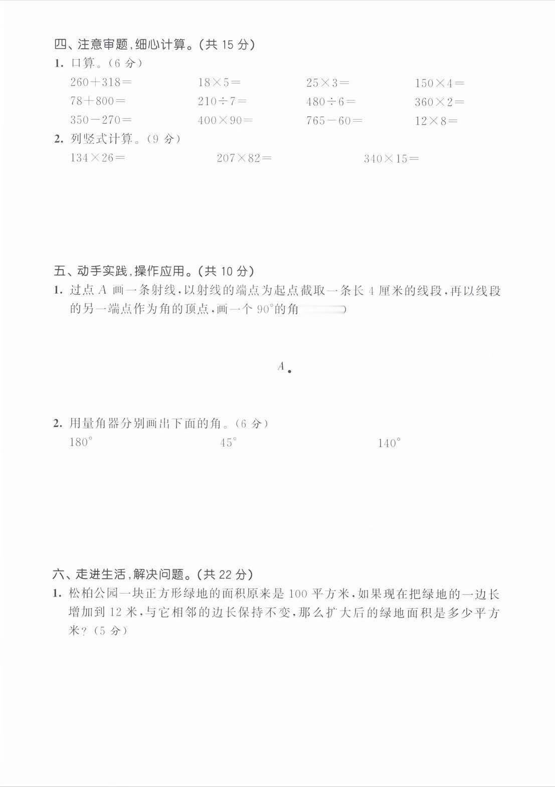 2025秋人教版数学四年级上册期中达标测试卷