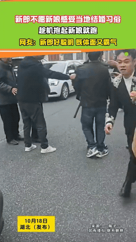 万万没想到!河南,新娘坐的婚车刚到,新郎的亲朋好友还没来得及细看,新郎直接一把抱起新娘,撒丫子就跑了出去,留下众人一脸懵地待在原地。 婚礼当天,按照当地的婚俗,新娘下车后可能要经历一些“热闹”的环节,比如被亲友们闹一闹,有时候场面可能会让新人有点尴尬。 这位细心的新郎呢,可能是提前预感到了什么,或者就是单纯不想让新娘面对这种可能的困扰。 于是,他灵机一动,来了个“先发制人”。 婚车刚一停稳,他立马抢先一步,利落地把新娘从车上抱下来,然后二话不说,抱着新娘扭头就跑! 这一连串动作那叫一个干脆利落,等周围的亲友们反应过来是咋回事的时候,新郎早就抱着他的新娘子跑出去老远了,留下大家先是一愣,随即爆发出一阵善意的哄笑和掌声。 有网友说:“这新郎官儿太聪明了!既避免了可能出现的尴尬场面,护住了新娘的体面,那抱着媳妇儿就跑的架势又显得特别霸气,这才是真心疼老婆的表现啊!” 也有网友说:“这波操作满分!用最体面的方式化解了潜在的麻烦,还成了婚礼上独一无二的亮点,比那些硬着头皮走过场强太多了。” 说起来,河南一些地方确实有比较热闹的婚俗,比如接亲时村民们会哄抢喜烟喜糖,图个喜庆和热闹。 虽然本意是增添气氛,但有时候如果尺度把握不好,或者遇到特别内向的新人,也确实会让人有点不知所措。 像这次事件中新郎的做法,可以说是用一种幽默又果断的方式,巧妙地将传统习俗进行了“改良”,既没有完全否定热闹的氛围,又牢牢守住了自己和新娘的舒适区,尤其是表达了对新娘的呵护! 也有网友觉得新郎是不是“小题大做”或者“不尊重传统”。 但我觉得,衡量一个行为的好坏,关键要看它是否增进了当事人的幸福感,是否体现了对个体的尊重。 说到底,婚礼是两个人携手新生的开始。在这个重要的节点上,新郎用一个“霸气”的公主抱,大声宣告了他的婚姻观:在我的世界里,你的感受永远位居中心,所谓的“规矩”或“热闹”,都大不过你此刻的笑容。 这或许就是给新娘最踏实、最浪漫的结婚礼物了。 希望每一对新人都能拥有这般守护彼此的勇气和智慧,让婚礼真正成为充满喜悦和尊重的美好回忆!