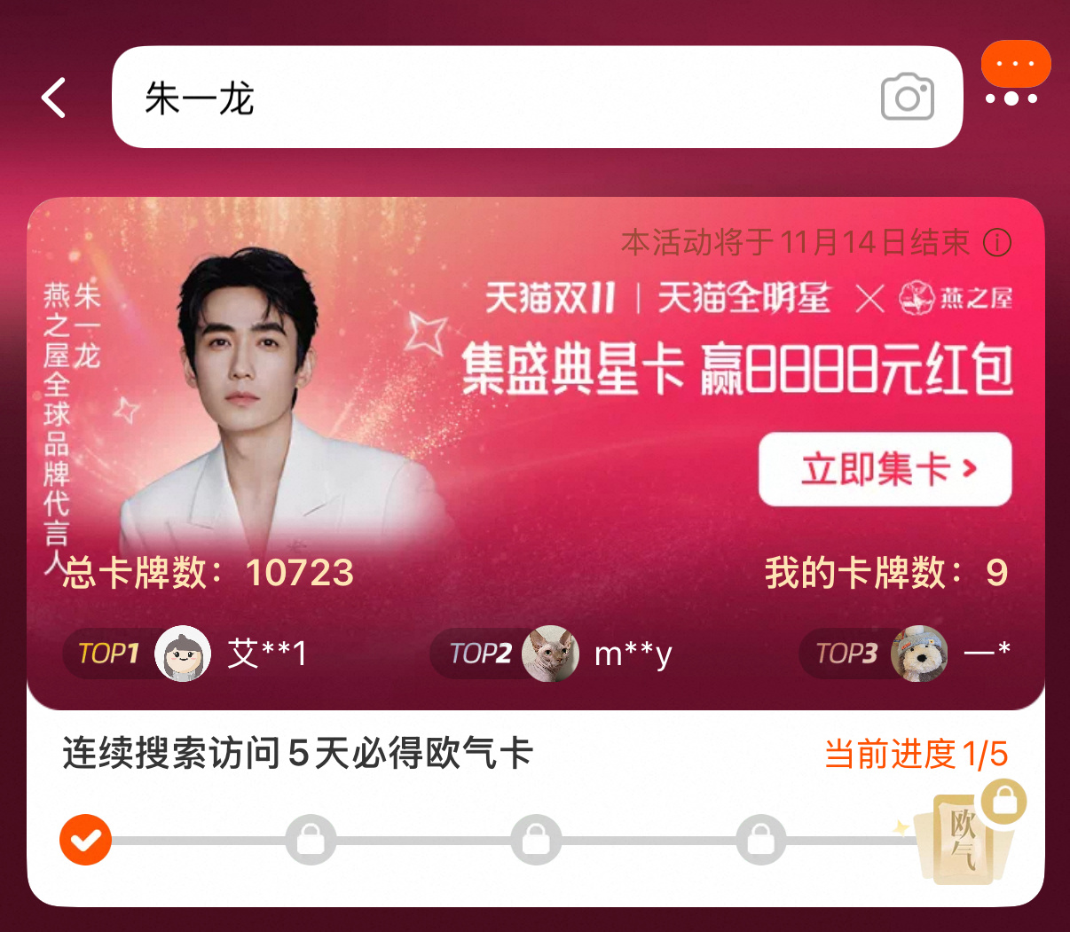 淘宝搜🔍朱一龙抽➕做任务来[手指比心]朱一龙燕之屋全球品牌代言人