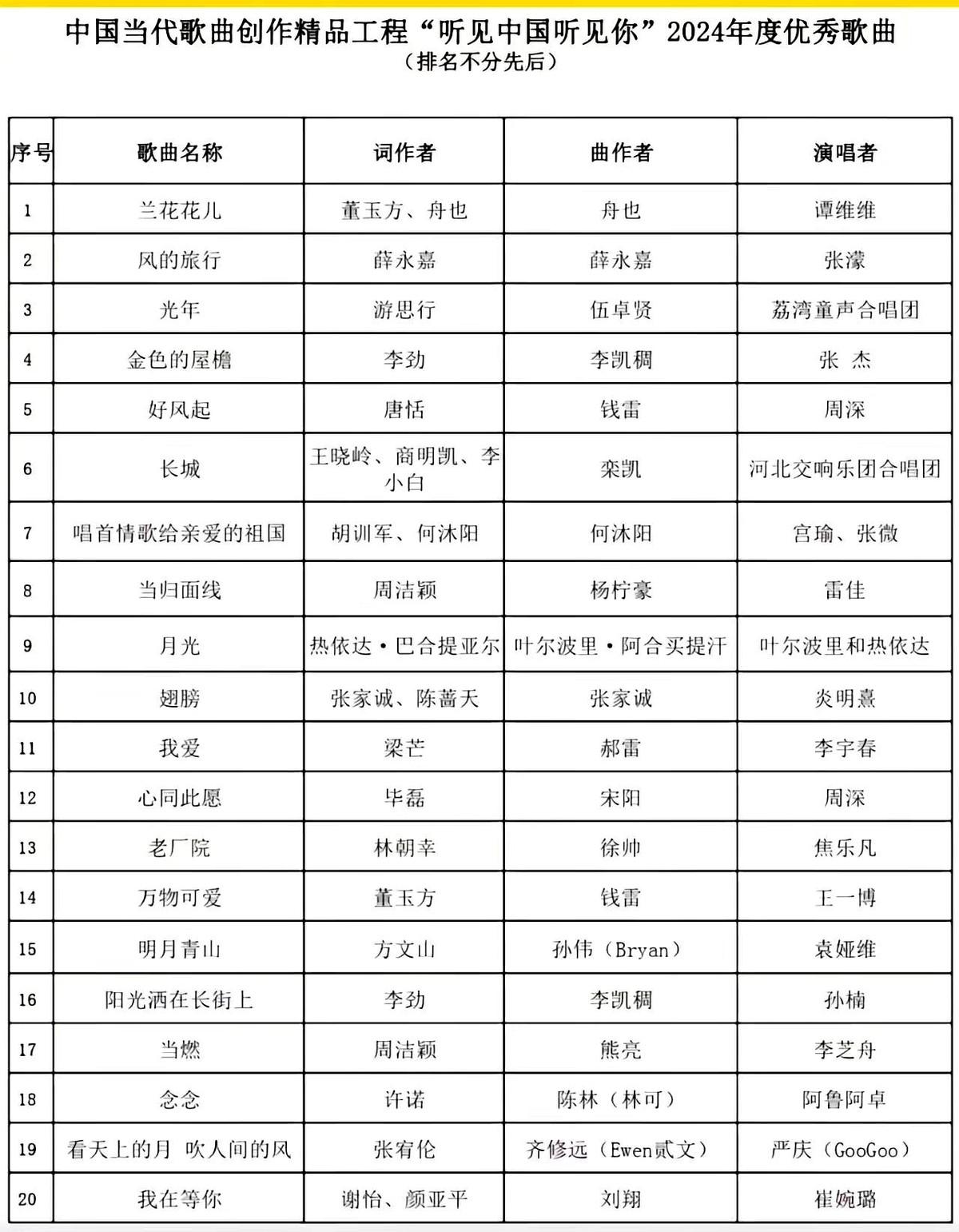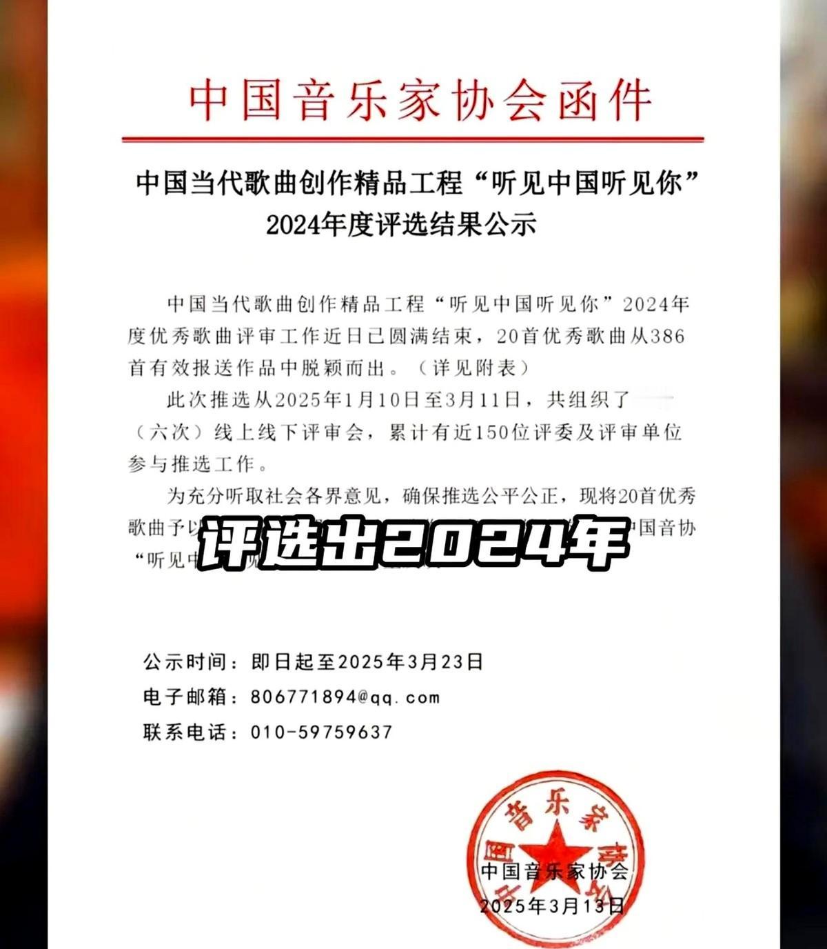 我对中国音乐家协会评选出的2024年优秀歌曲存疑。 我发现自己和朋友连一首都没听过。 我认为真正的精品歌曲具有广泛传播度与认可度。 音协评选无大众参与,结果难以服众。 网友对此说道: 音乐家协会和书法协会、足球协会一样,成功的把这个行业拖入泥潭,不彻底改革,这几个行业没有任何希望! 其实中国音乐家协会多此一举,完全没有必要,好的音乐老百姓自会喜欢,自会传唱。 刀郎的歌曲传唱度那么高,花妖、翩翩、未来的底片、西海情歌、手心里的温柔,还有虞美人、故乡、鸿雁于飞、牧羊人等等等等,怎么一首都没有上榜? 哦对了,刀郎不是他们这个圈子的人。 这几首歌曲我一个也没听过,因为我也不是他们这个圈子的。 专业性和人民性应该各占一半。 各行各业都应该自觉践行为人民服务的国家底色。 文化界更要践行全心全意为人民服务的政治底色。 空中楼阁不应该存在。