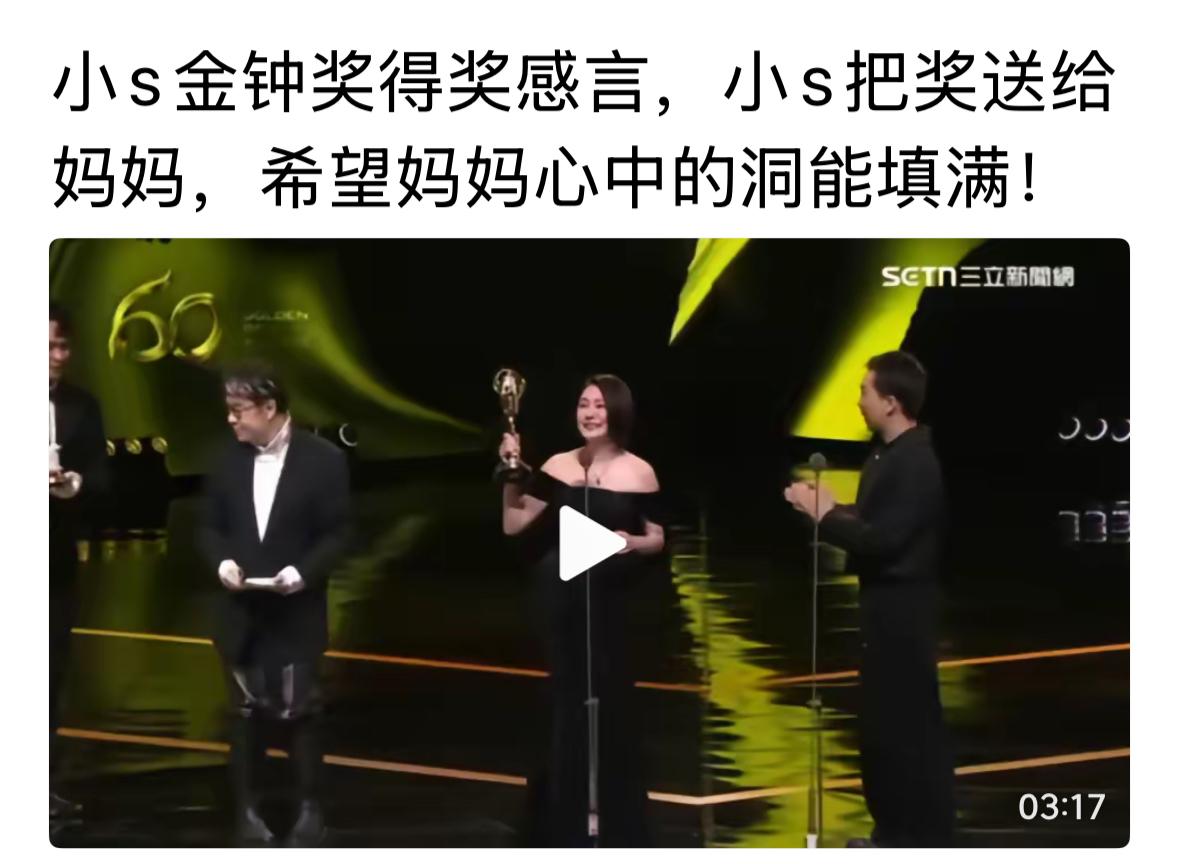 小S了把徐妈妈带出伤心的世界,她努力最到最好,成功了。拿到奖了,妈妈会开心一些,毕竟,最近家里的气氛一直都没有好过。都不愿意放下,太难了,到底是谁的问题。她说妈妈真的很难过,希望自己的奖能给妈妈带来安慰。