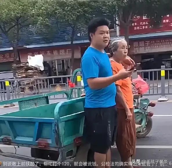 又一个讹人的,怎么总是让好人心寒,好人难当?长此以往,谁还敢做好事?谁还敢伸出援手,老人躺在地上谁还敢扶? 老人骑着三轮车带着孙女,不慎摔倒,三轮车压在老人身上老人动弹不得。 看到老人被压在三轮车底下,蓝衣男子把三轮车抬起来,把老人扶起来。可是老人不仅没有感谢蓝衣男子,还拽住蓝衣男子的手不让他走,蓝衣男子无奈打电话报警。