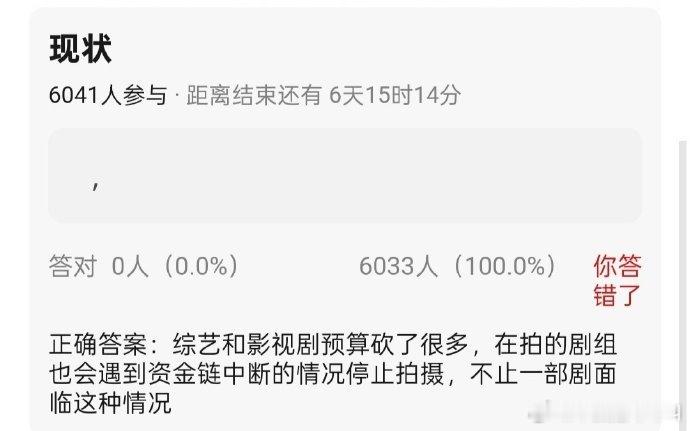 影视寒冬 综艺和影视剧预算砍了很多,在拍的剧组也会遇到资金链中断的情况停止拍摄,不止一部剧面临这种情况 ​​​