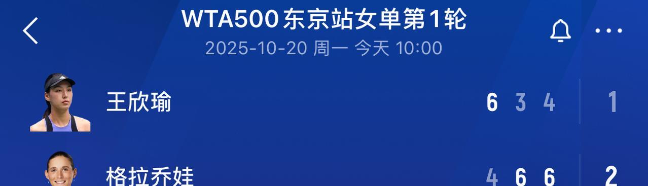 今年,在郑钦文因伤长期缺战、其他中国球员难堪重任的情况下,王欣瑜一度成为国人寄予厚望的唯一期盼,然进入中国赛季以来,她却在比利简金杯输保利尼,中网、武网、宁波连续三站WTA巡回赛又都以0-2输球遭遇“一轮游”,自信心崩塌、状态惨不忍睹、单打排名也直接从32掉到了近60,令中国球迷无比遗憾和失望! 今天上午在WTA500东京站女单第一轮,面对发球平庸、进攻无威胁、单打排名仅82位的法国球员格拉乔娃时,王欣瑜状态仍然低迷,表情怯懦、信心全无、步伐迟缓、气喘吁吁、出拍疲软、把握关键分效率低下,在6:4先胜一盘的情况下,第二盘被对手3:6扳回一城,决胜盘双方展开了破发大战,最终,王欣瑜再次没有扛住,以4:6败下阵来,从而大比分1-2再次被逆转、连续第四次遭遇“一轮游”! 与其说是王欣瑜输给了格拉乔娃,倒不如说是败在了自己自信心的崩塌!不知什么时候,那个青春洋溢、笑容可掬、美丽如画的王欣瑜可以再次回来?!