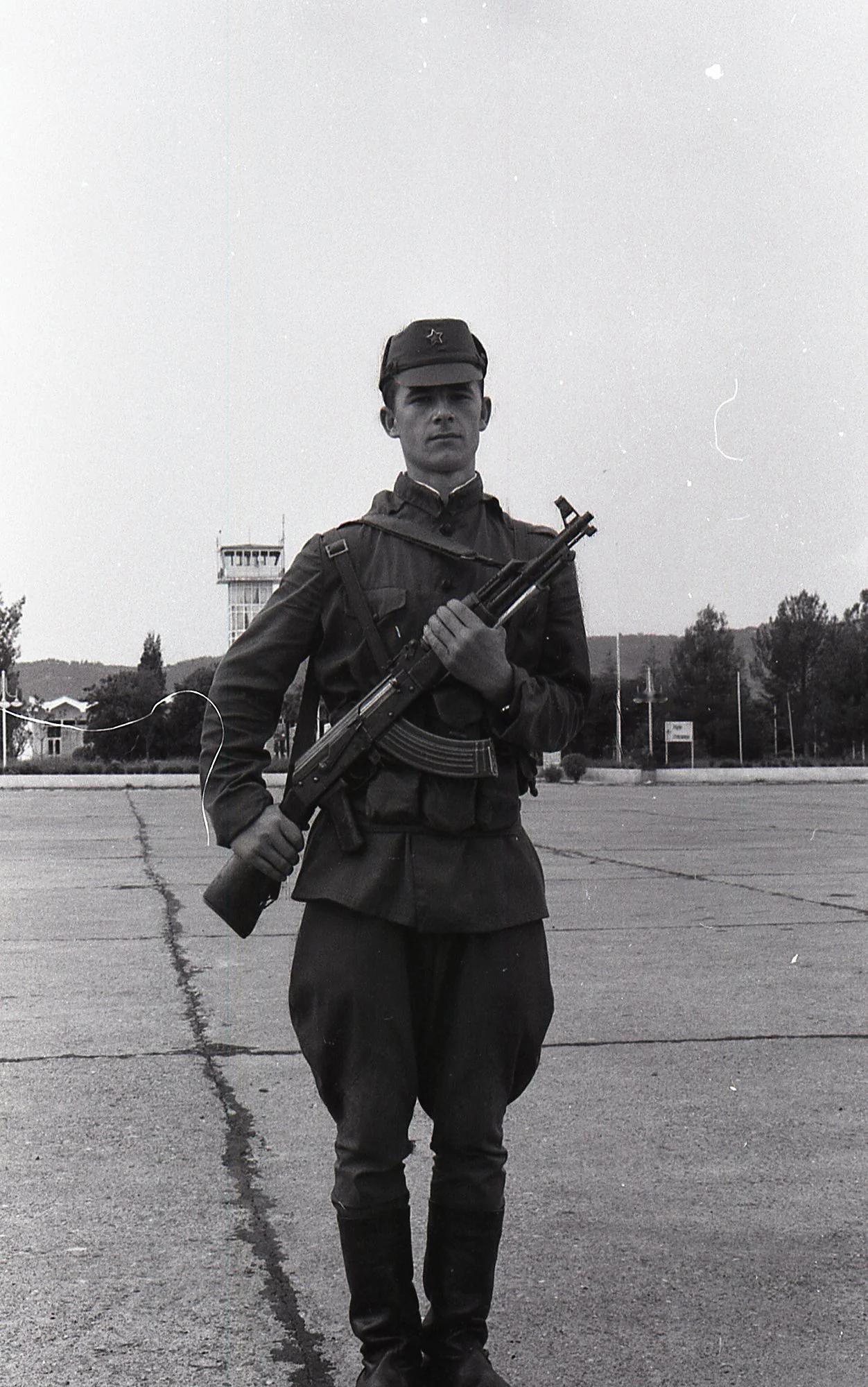 阿尔巴尼亚士兵手持 ASH-78 7.62 毫米突击步枪守卫机场。中国56式的阿尔巴尼亚版本,机器设备技术都是中国提供的
