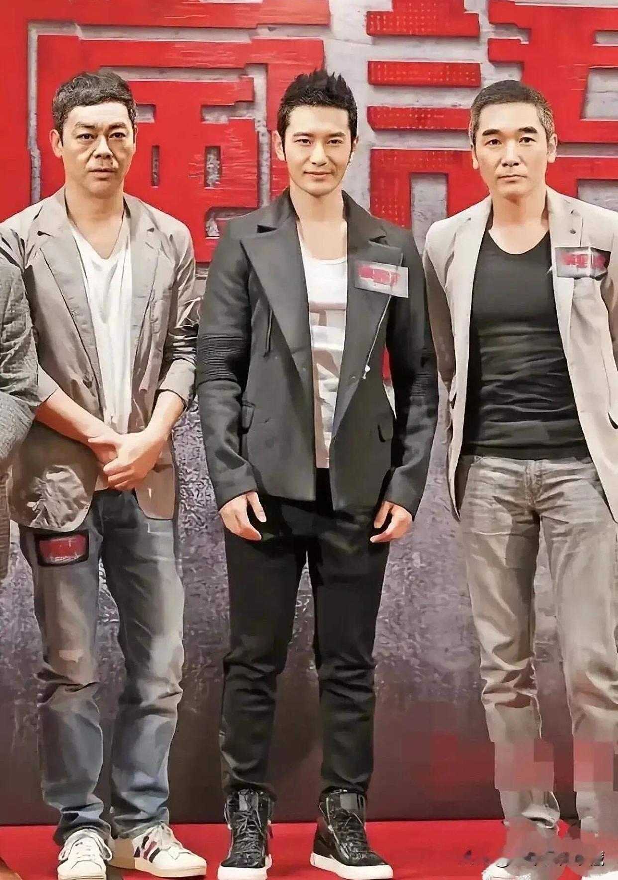 黄晓明和刘青云、方中信合影,三人中,黄晓明最年轻帅气,感觉他比方中信还要高些,方中信是1.82米身高,本身就是模特出身,身形挺拔,可还是比黄教主矮了点,难道是他身高缩水了?刘青云1.8米的身高和黄教主差不多,这样来说,黄晓明也有1.8米高,只是感觉黄教主身材很瘦弱,和二位比起来,显得很瘦小的感觉形象不高大!没有刘青云和方中信那种型男荷尔蒙的感觉!