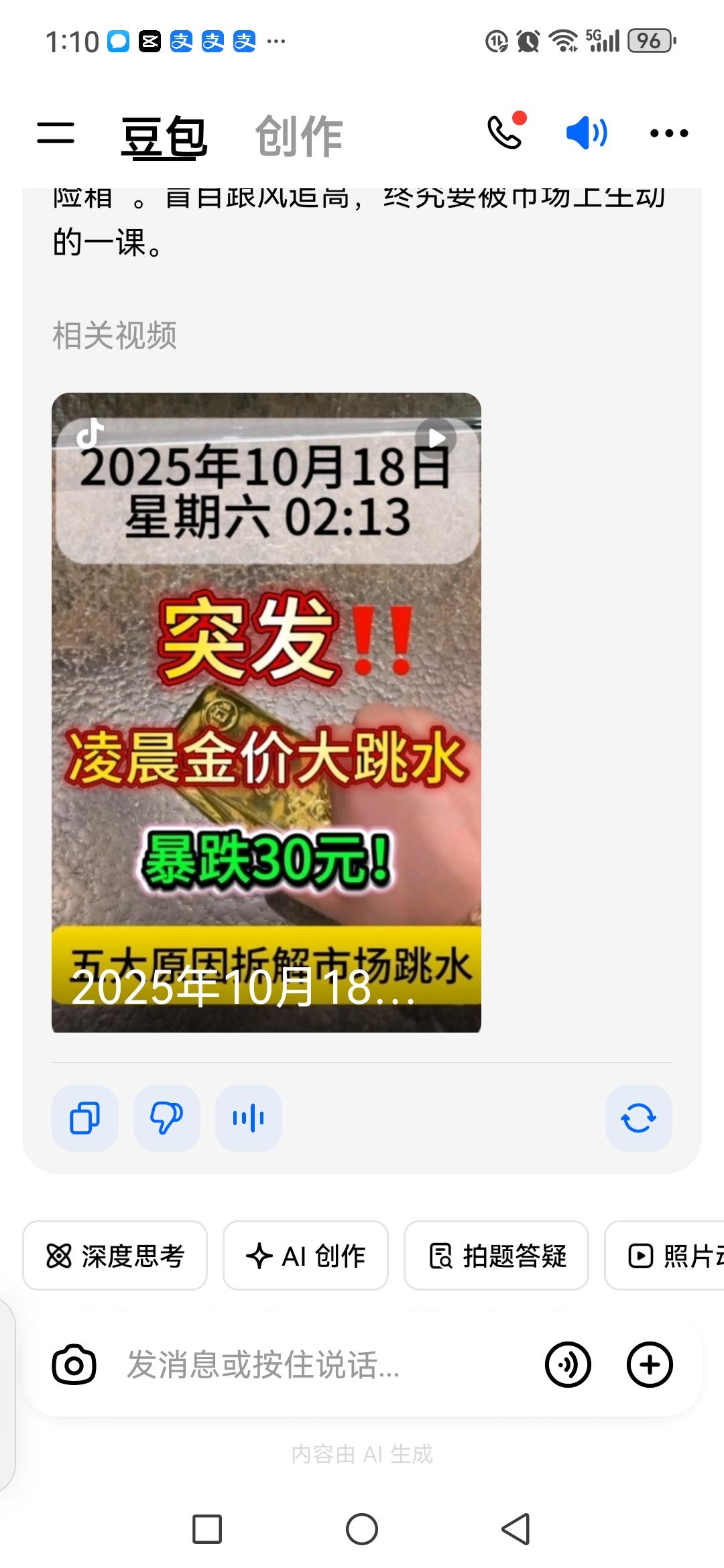 别碰黄金了,真不是开玩笑 “别碰黄金了,真不是开玩笑!”楼下保安的吐槽,成了近期黄金市场的生动注脚——他闺女昨天以1010元/克入手50克黄金,今日就遭遇价格跳水,账户直接飘绿被套。 这并非个例。10月20日,老凤祥等品牌金价单日跌幅超1.7%,周生生黄金跌幅达1.17%。此前金价短期暴涨催生的“追涨潮”,让不少像保安闺女这样的新手仓促入场。而美元走强、地缘风险缓和引发资金撤离,叠加前期获利盘集中平仓,多重压力导致金价回调。 从有人40万买金从赚5万到亏3万,到如今新手单日被套,反复印证:黄金不是稳赚的“保险箱”。盲目跟风追高,终究要被市场上生动的一课。作品声明:内容取材于网络。