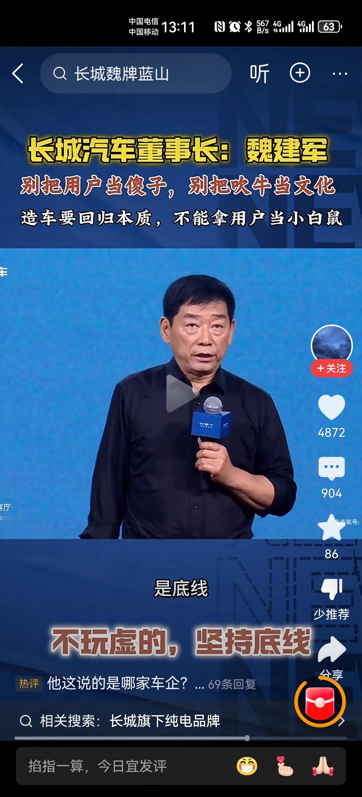 “别把用户当傻子”, “别把吹牛当文化”。 长城汽车魏老板说, “造车要回归本质, 不能把用户当小白鼠。” 看看现在造车品牌是越来越多, 那又是哪个品牌把造车当成本质来做的? 虚假宣传, 过度营销, 靠颜值, 靠名气, 最后吃亏的还是用户。 把安全, 把性价比, 当成本质来做, 这才是有良心的品牌, 这才是能走长久的品牌。 中国汽车最缺的不是口号, 是底线。 连底线都没了, 还能活着去张扬吗?