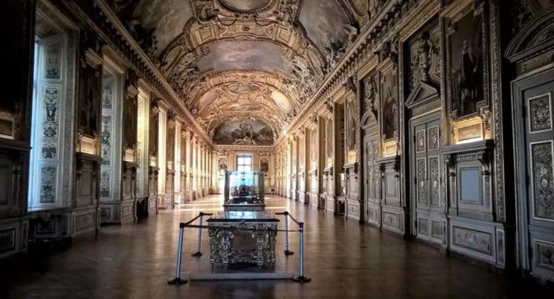阿波罗画廊,是卢浮宫的心脏。那是阳光洒落、金光辉映的殿堂,是历代艺术品被安放的神域。而如今,这个神域被人破开,碎裂的玻璃映着晨光,像一场文明的噩梦。