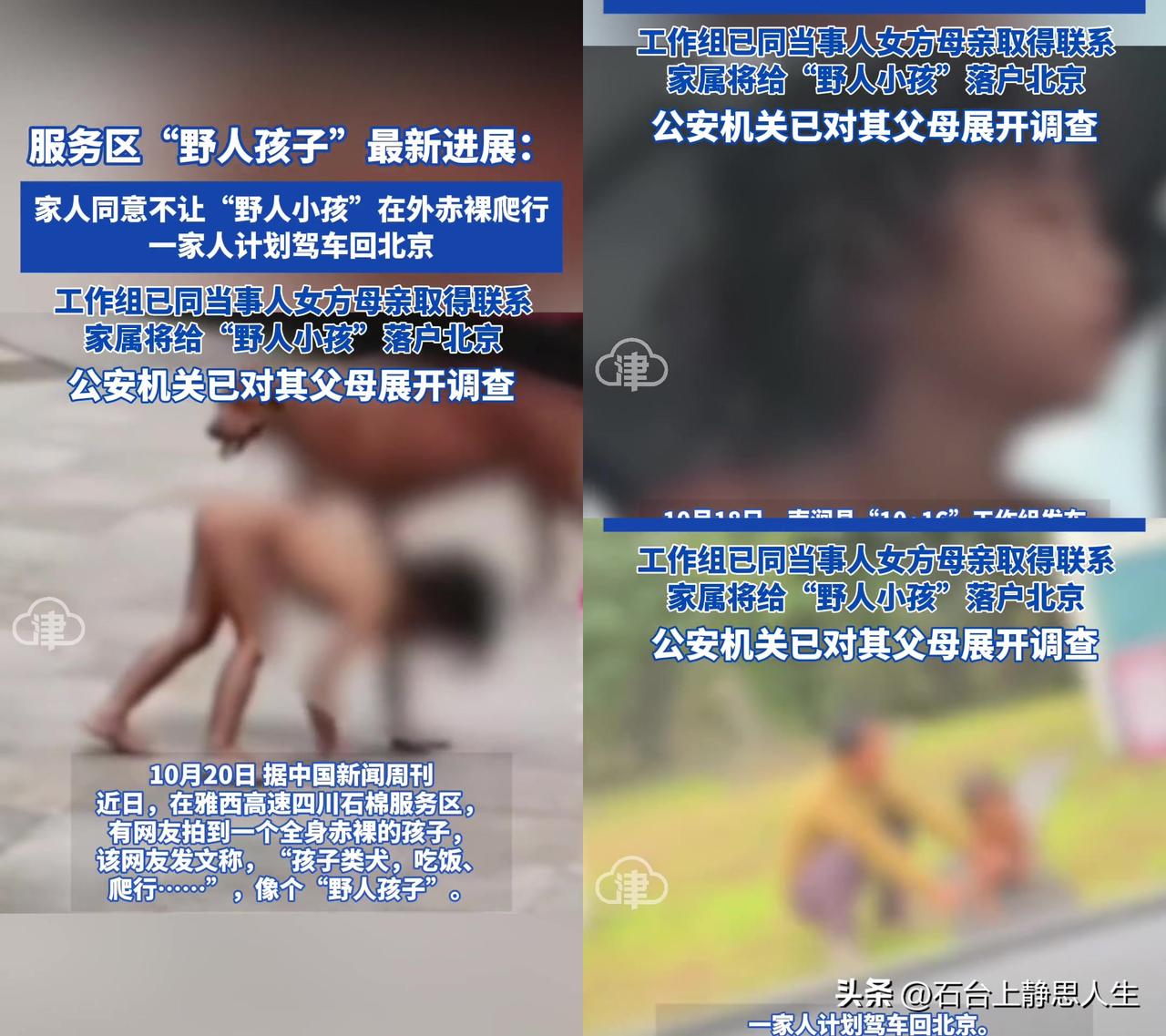 咱之前是不是都心疼坏了?以为服务区那野人孩子是穷得连件衣服都穿不起?结果最新进展一出来,人家要驾车回北京落户了! 就是雅西高速那个光着身子、像野人一样爬的孩子,现在家人终于松口:不让孩子再在外光着爬,还要带孩子回北京。 有人说这对父母肯定有猫腻,孩子说不定不是亲生的,靠暗网直播赚钱;也有人说既然同意改了,给次机会吧? 可我就想不通,早干嘛去了?之前把孩子当野人养的时候,怎么没想起孩子要脸?现在同意整改,是怕被查还是真疼孩子? 现在工作组找到了孩子外婆,要给孩子落北京户口,公安也在调查父母。 大家说,这对父母该被追责吗?孩子留在家里能真的穿上衣服好好长大吗?