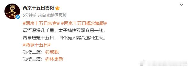 领衔主演成毅林更新,成毅林更新太子捕快双双命悬一线 ,已经官宣,期待住和两位的故事的见面,拍摄顺利呀[打call]