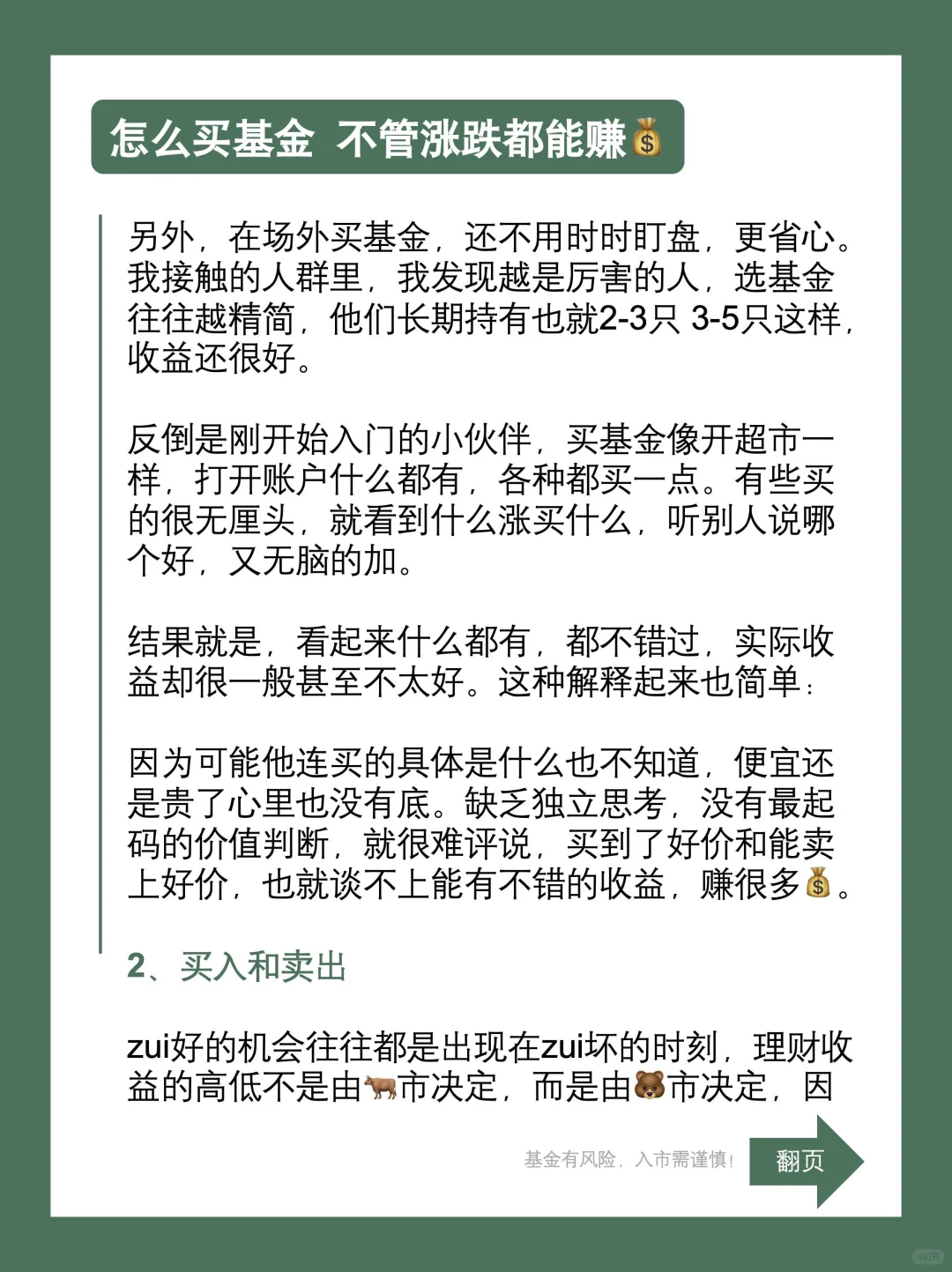 在我接触的人群里,我发现越是厉害的人,选基金越精简,长期持有也就2-3只3-5只这样,收益很不错。反倒是刚入门的小伙伴,买基金像开超市,打开账户什么都有,有些买的很无厘头,什么涨买什么,别人说哪个好,又无脑的加。看起来什么都有,都不错过,实际收益却很一般甚至不太好。