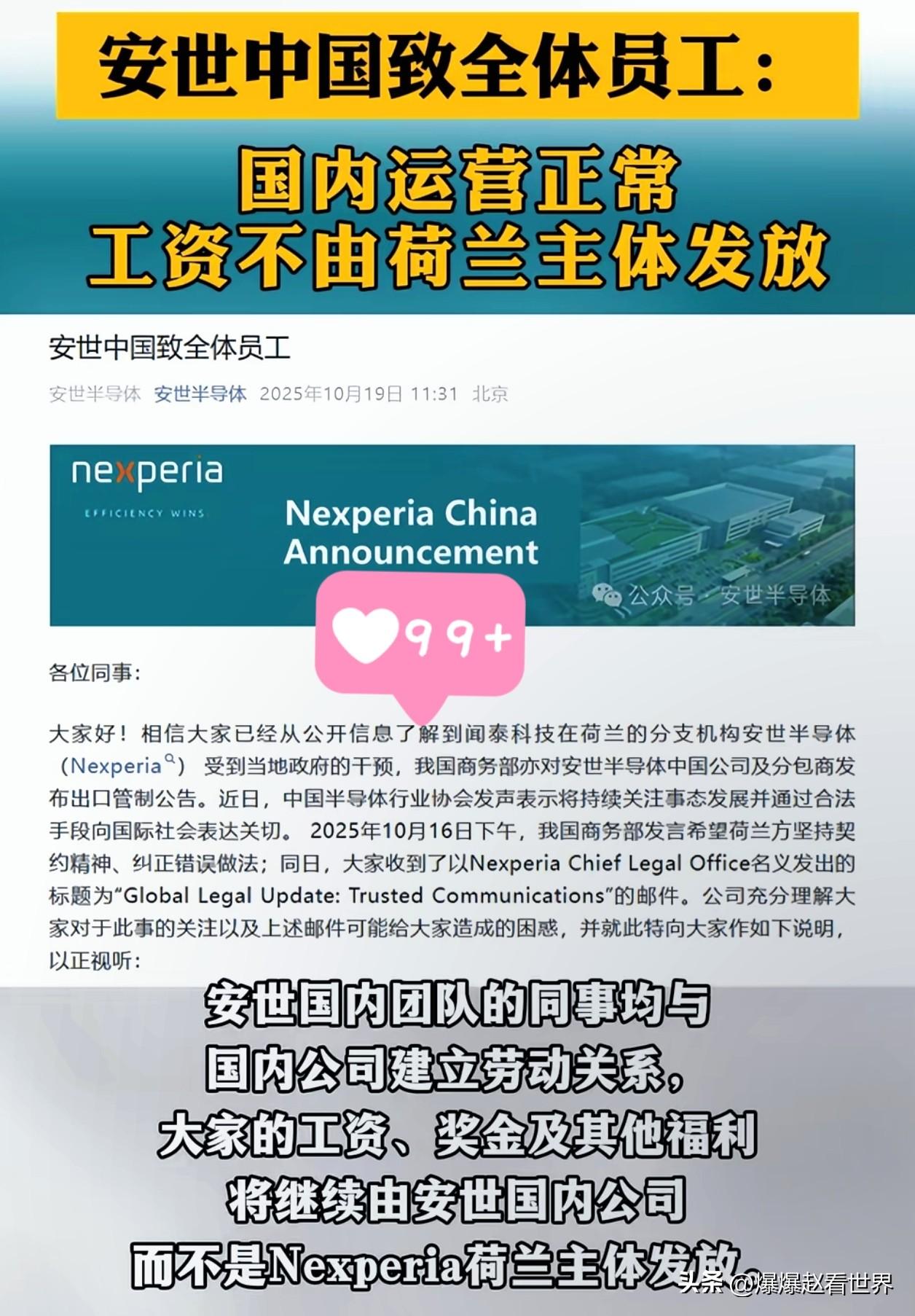 快讯,快讯! 安世半导体最新消息! 10月19日,安世中国通过官微发布了公开信,