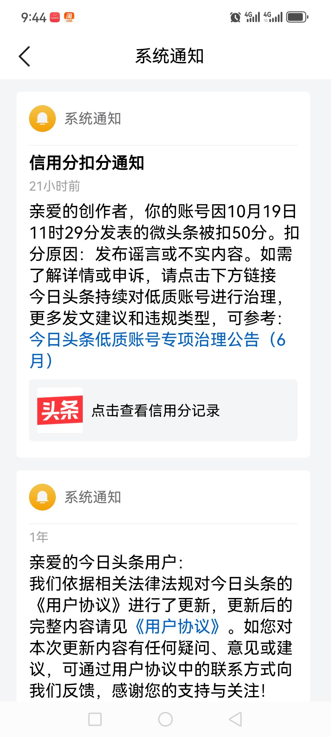 对头条越来越失望了! 别人都可以写的热点事件,为什么到我这里成了造谣了。 看了官媒才写的作品,竟然被头条扣了五十分,是不是有点冤? 前天写了一篇眼看就要爆火了,忽然审核提醒,说作品传播不良价值观,流量戛然而止。 本来想着业余挣点零花钱,看来也没有那么容易!