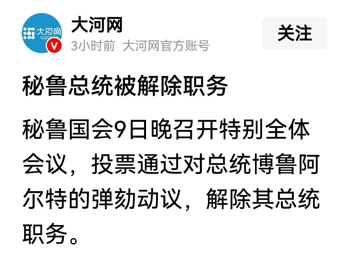 秘鲁首位女总统博鲁阿尔特遭弹劾! 这个看似普通的新闻,其实对中国的影响不小。 1