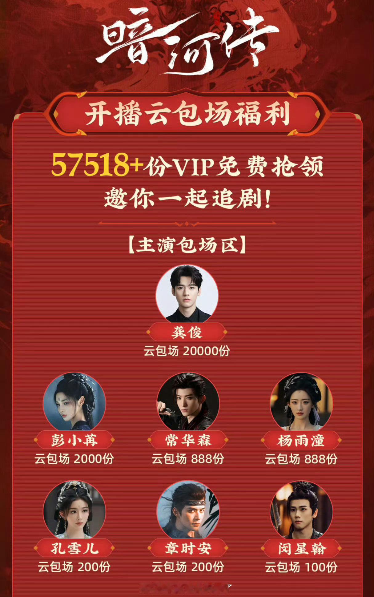暗河传云包场《暗河传》今日开播,主演主创亲友团云包场来啦,龚俊包场2w场[点赞]