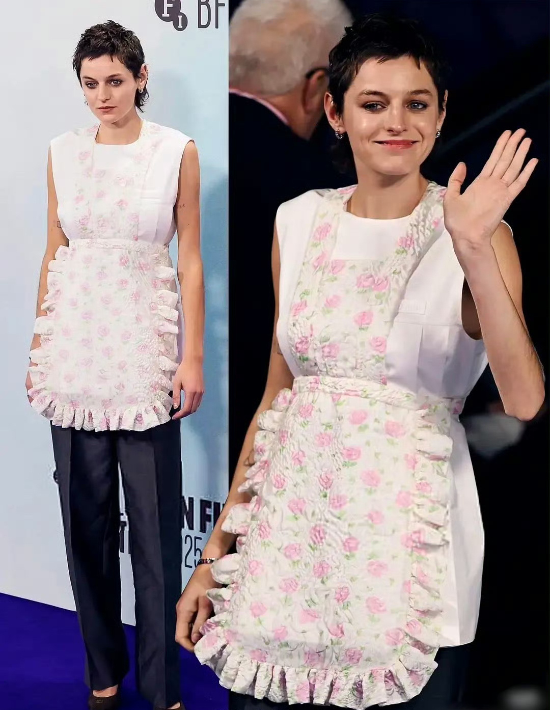 第一位miumiu围裙大使已出现,艾玛出席电影活动穿的2026春夏新款,很不错哦!