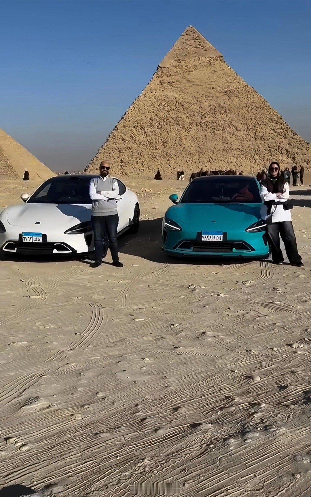 国外开小米的还是有实力,小米su7直接开到金字塔下面。