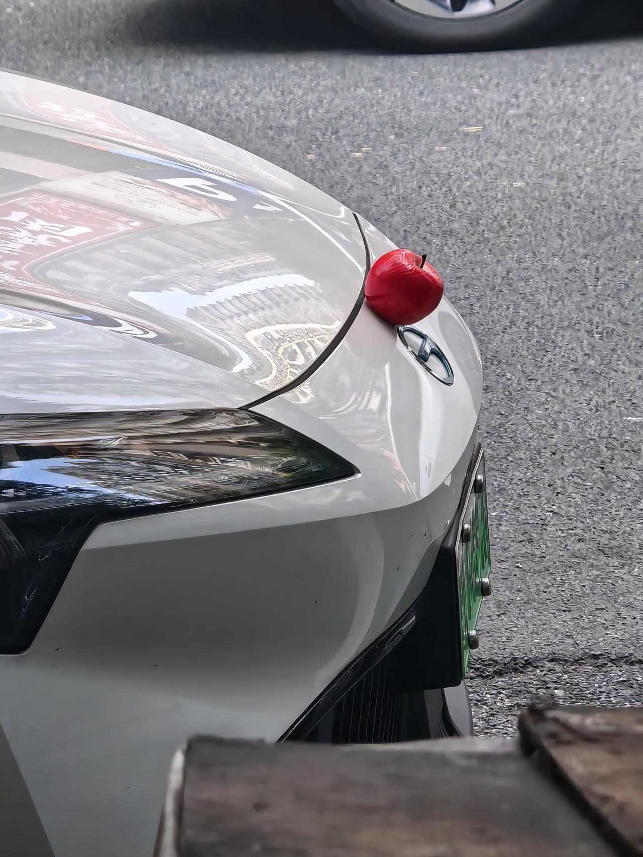 刚刚路边看到,车头上放个苹果,什么意思啊