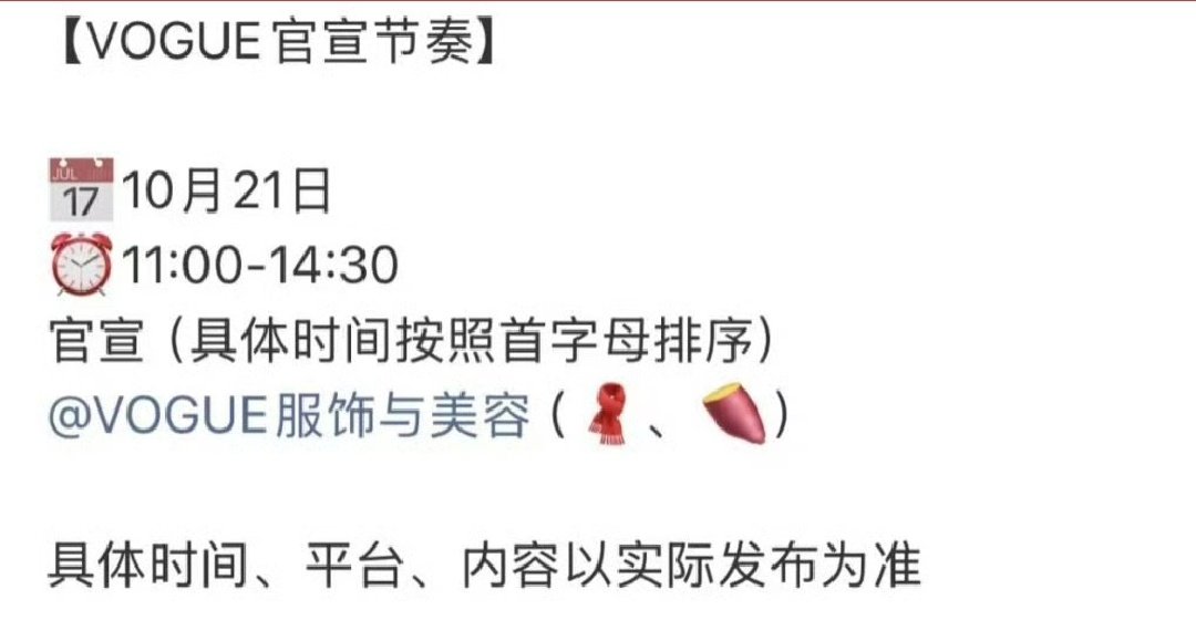 vogue盛典官宣节奏vogue官宣按首字母排序vogue盛典官宣节奏!