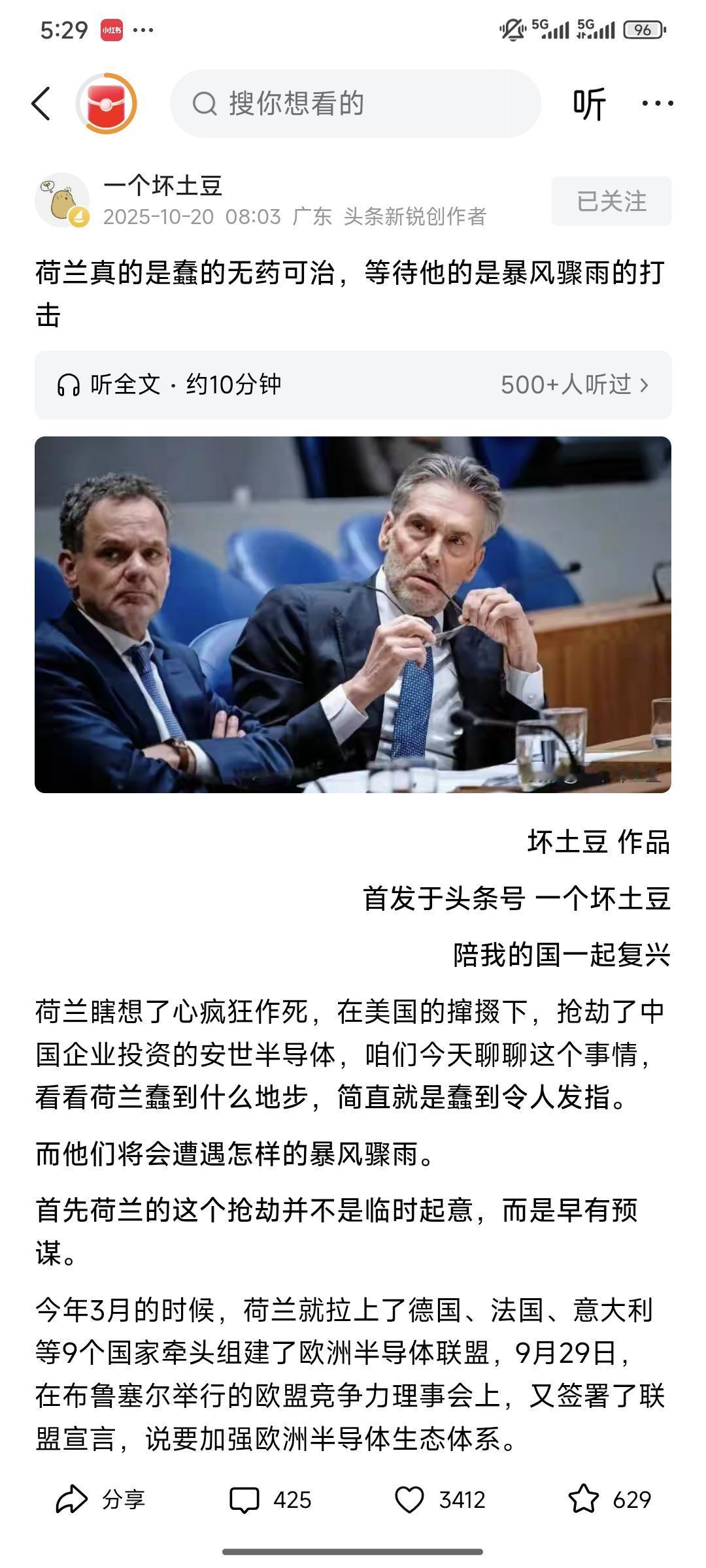 荷兰刚抢完安世股权就懵了:东莞工厂当天断供,中国员工直接宣布独立!八年前我们忍了,现在谁还惯着? 坏土豆说的太好了,荷兰人为什么敢第一个动中国的海外资产,主要原因不是有美国人撑腰,是因为在禁止出口光刻机时候,我们一直克制,一直没有对等反制。试想,如果八年前,我们用今天禁止稀土的力度对待光刻机禁令,他们早崩溃了。但八年前没这么干,我们用八年补齐短板,他们却内耗了八年。八年后,荷兰人还以为我们是八年前的我们,可惜这次,谁都不会再惯着他们。 荷兰9月30日刚冻结安世半导体股权,10月4日中国就果断掐断东莞工厂出货通道,连缓冲期都没给。荷兰经济事务大臣卡雷曼斯在欧盟会议上急得拍桌子,一边喊话求“理性谈判”,一边让总部切断中国员工系统权限,结果安世中国团队直接发公开信宣布独立运营,当天就拉通国内供应链保障客户订单——这波操作把荷兰的“抢劫闹剧”扒得底裤都不剩。他们以为抢了股权就掌控一切,却忘了安世70%的产能在中国,80%的封装测试靠东莞工厂,没了中国生产线,欧洲总部手里的图纸不过是废纸。 荷兰敢赌,本质是犯了两个致命误判。一是把过去的克制当软弱,觉得中国还会像八年前那样被动应对;二是根本没算清对中国的依赖账。他们只盯着安世2024年147亿的营收,却选择性忽略中国市场占其营收近半;嘴上喊着“摆脱中国供应链”,却忘了生产芯片必需的镓金属95%来自中国,连ASML都慌了——虽说有稀土库存,可EUV光刻机70%的永磁体原料靠中国,新出台的稀土管制连0.1%的含量都要审批,他们找遍全球都找不到替代供应商。 更讽刺的是,荷兰打着“维护欧洲半导体生态”的旗号抢企业,结果把欧洲汽车产业拖进泥潭。宝马、特斯拉的车规级芯片断供,转头就找英飞凌和中国斯达半导体谈合作;荷兰花农更慌了,中国市场占他们出口量的30%,现在就怕反制措施落地。这哪是抢好处,分明是给自己找堵,也让西方吹嘘的“私有财产不可侵犯”成了国际笑话。 八年前的克制,是为了补齐短板;现在的强硬,是因为手里有牌。荷兰现在就两条路:要么认错把安世股权还回来,要么看着企业破产、ASML停摆、农业崩盘。你觉得他们会选哪条路?评论区说说你的判断!