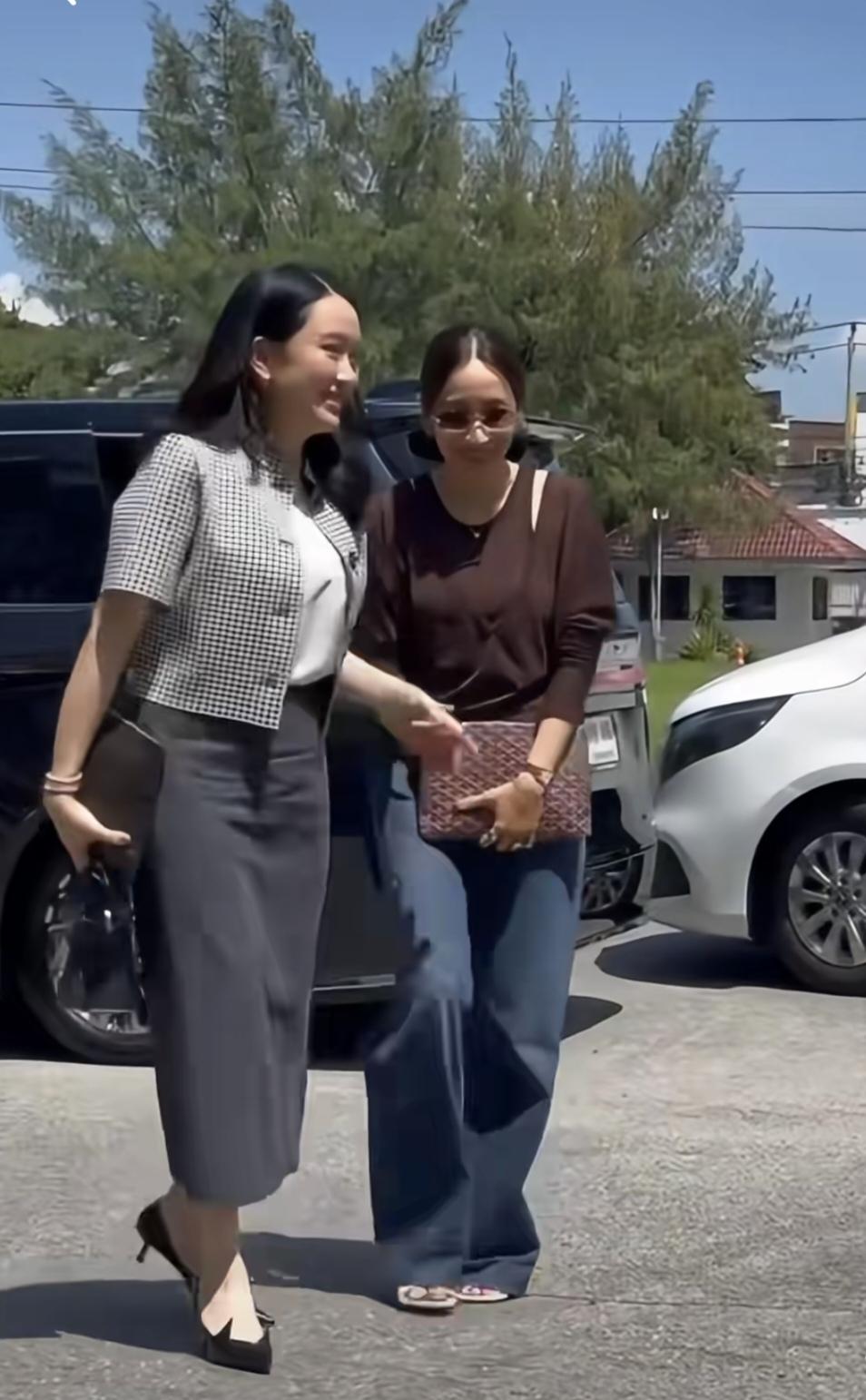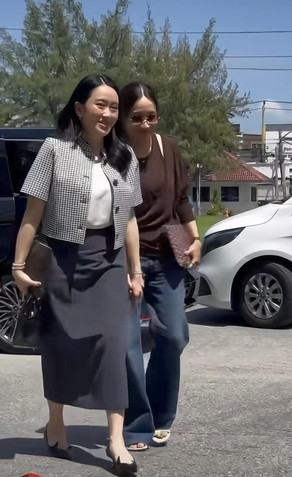 又见佩通坦:当地时间10月20日上午,佩通坦携姐姐萍通塔来看望狱中的父亲他信。 姊妹俩各自坐着自家车来到监狱门口汇合,一下车,佩通坦姊妹肩并肩,满面笑容地走来。说真的,她们也许习惯了父亲入狱的日子,面容逐渐开朗,没有了往日的忧愁。姊妹俩着装时尚,靓丽,太美了! 她们和等候在门口的红衫军打招呼,交谈。然后姊妹俩进入监狱大门,手挽手,肩并肩,真的团结一致啊。 他信家族遇到了波折,但是,家族成员互相关心,互相爱护,彼此心连心。两个女儿对父亲很好,佩通坦的妈妈,还有两个女婿,还有别的亲人,都一如既往地关心他信。虽然他信已经76岁高龄,有亲人的关心和支持,相信他一定健健康康地度过一年狱中生活。风雨过后是彩虹!