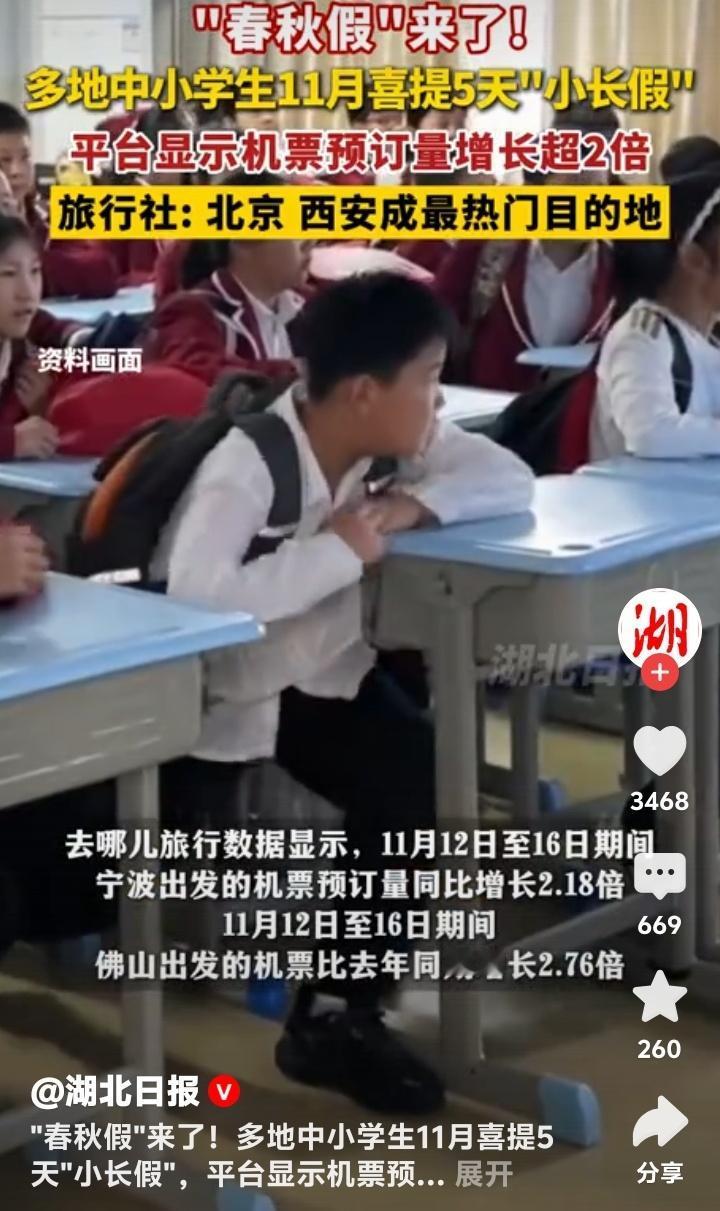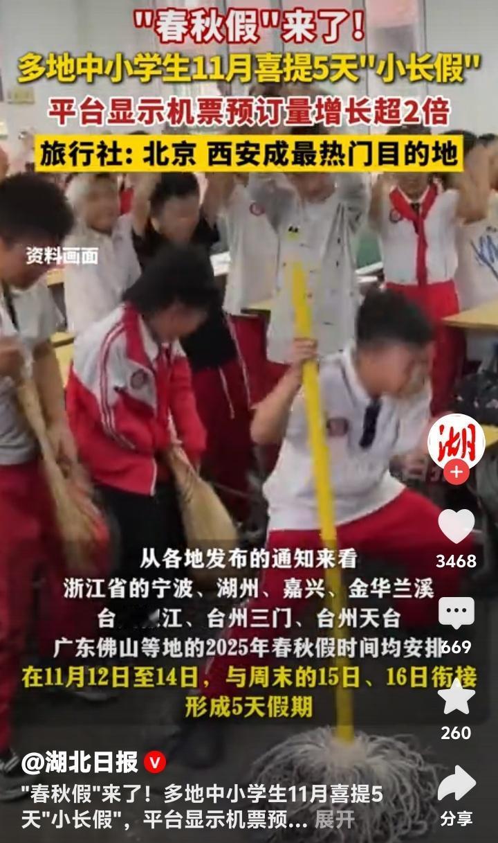 台州家长沸腾了!11月椒江、三门、天台中小学生喜提5天春秋假,机票预订暴增2倍,