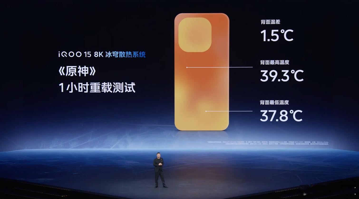 iQOO15安兔兔跑分438万分,Q3电竞芯片加持提升游戏光追、游戏画质、游戏帧率表现,原神打一小时背部最高温度只有39.3°