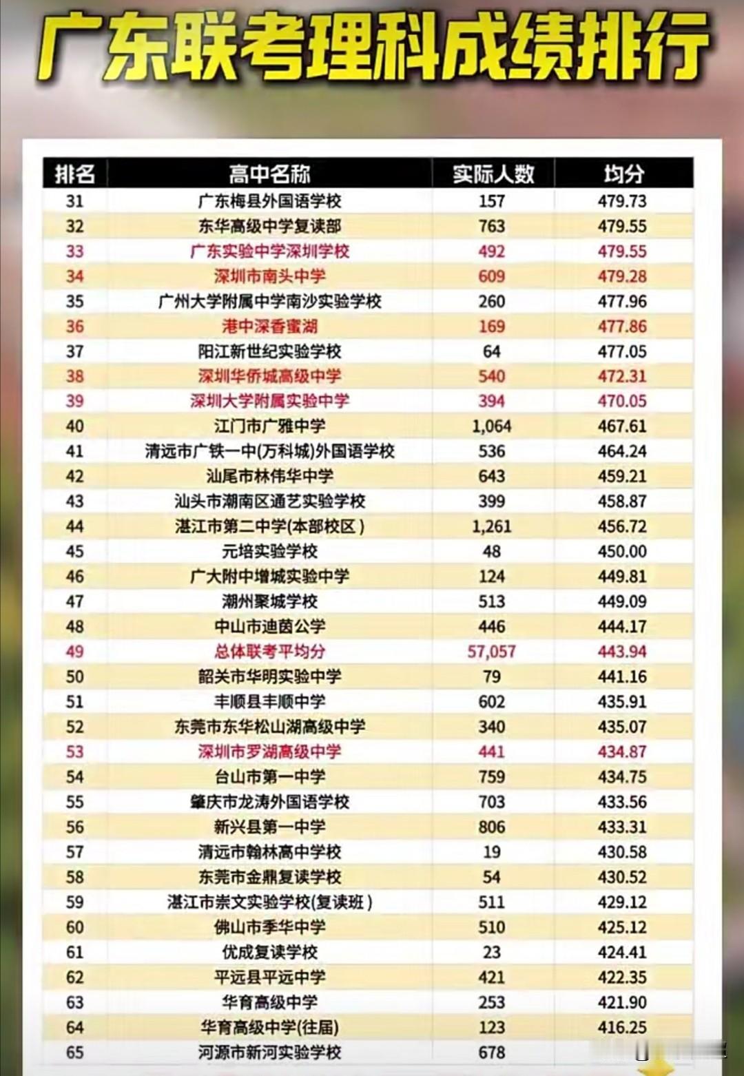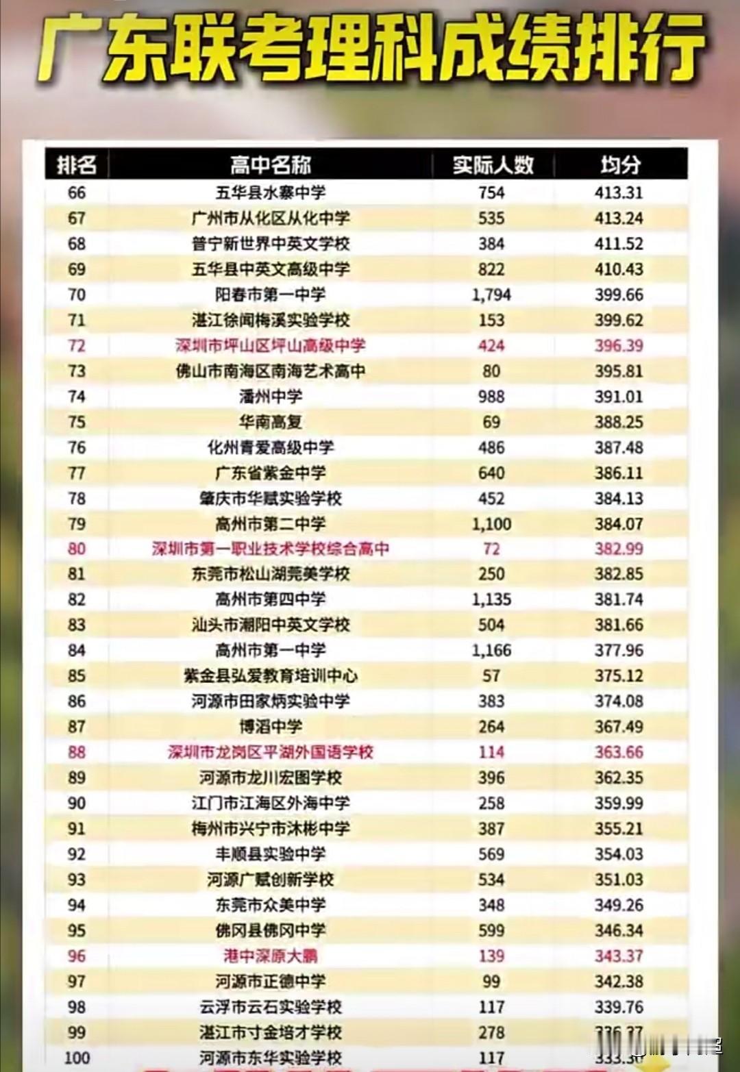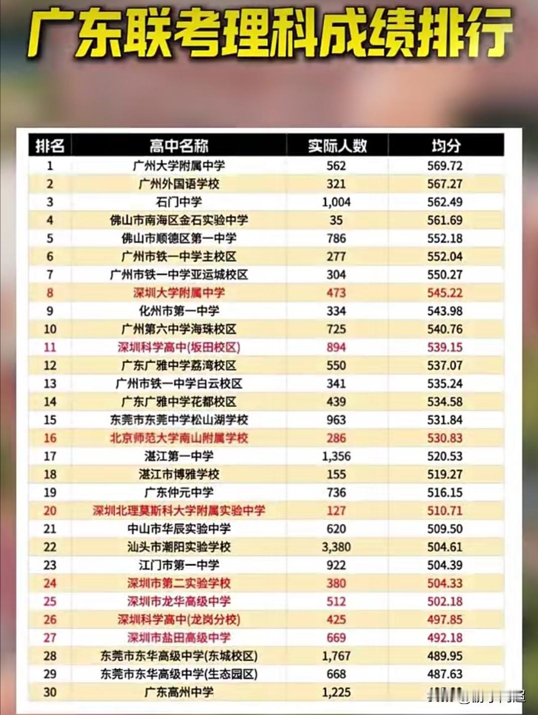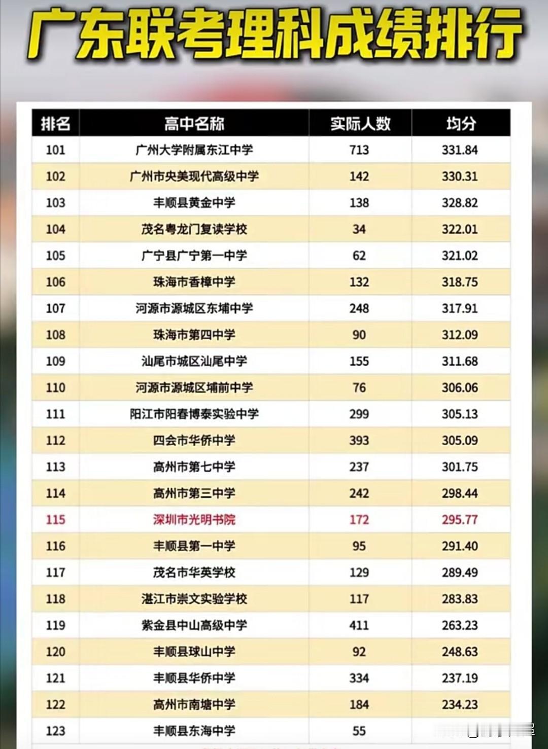广东省2026届十月高三上进联考各校平均分排名情况。 此次联考全省超120所高中