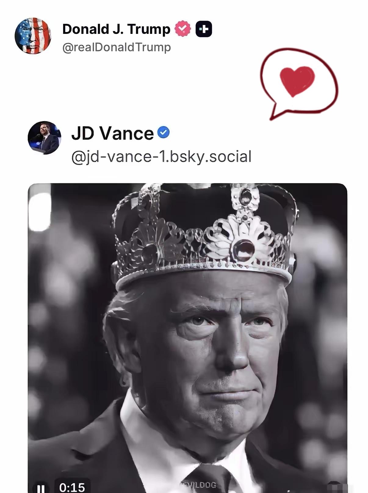 万斯很懂特朗普!当M国各地爆发2600场近700万人参加的反特朗普集会,口号是:不要国王!此时,万斯想到的不是劝解和平息,而是火上浇油,专门制作特朗普戴上皇冠的AI视频,视频最后还让在集会上手撕皇冠的佩洛西跪下了,真是让人忍俊不禁! 他们压根不在乎民众在怕什么。普通美国人担心医疗福利被砍,害怕养老金缩水,特朗普团队却沉迷于制作"帝王cosplay"。那个AI视频里,特朗普不仅戴着镶钻皇冠,还开着印有"特朗普国王"的战斗机向抗议者扔垃圾,简直把威权幻想玩成了电子游戏。 真实世界的痛苦可没这么魔幻。新泽西有位单亲妈妈,连着三天带着双胞胎女儿举牌抗议。她说特朗普要取消的食品券项目,是她家孩子唯一的牛奶来源。"他们在玩数字游戏,我们在算明天吃什么"。这话听着就让人心头发紧。 更讽刺的是,政府停摆导致核安全员工无薪上班,白宫却忙着给洛杉矶派军队。参加过伊拉克战争的老兵看着国民警卫队的装甲车直摇头:"我在巴格达见过这套,没想到会在家乡重演"。 万斯团队显然打错了算盘。他们以为把反对者做成下跪表情包就能赢,殊不知加拿大、德国的民众也举起了声援标语。伦敦有个大学生举的牌子特别扎眼:"特朗普先生,中世纪已经过去800年了"。 现在白宫网站请愿区被"反对王权"的签名淹没,最火的一条留言写着:"我爷爷当年诺曼底登陆,可不是为了给美国总统修城堡"。这话说得真够狠的。 各位读者你们怎么看?欢迎在评论区讨论。