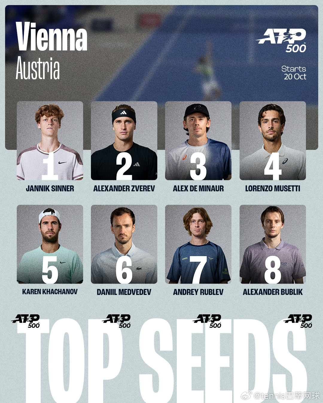 这个礼拜atp的两站500赛除了阿尔卡拉斯和德约科维奇,前10都参与其中,年终的争夺愈发激烈;