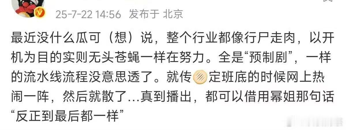 现在剧宣四大阶段微博视界大会剧市这四阶段太真实!立项惊为天人,拍时赌它爆,预告盼