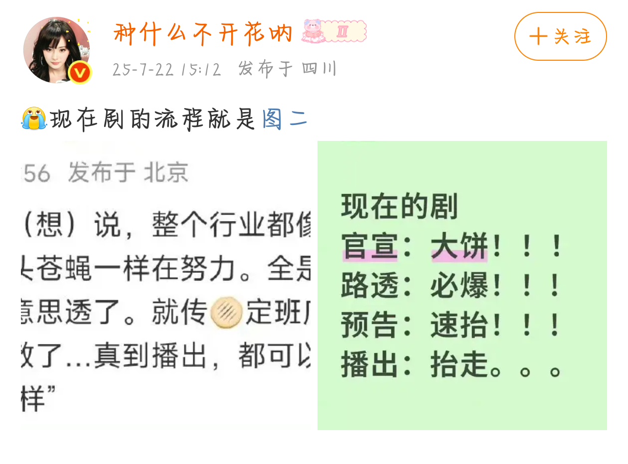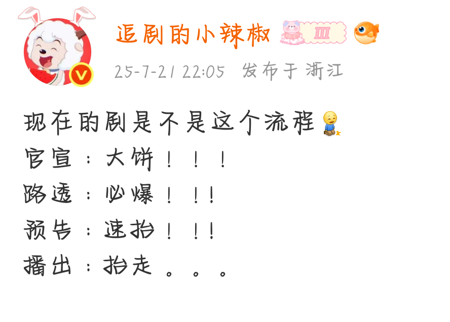 现在剧宣四大阶段微博视界大会剧市这四阶段太真实!立项惊为天人,拍时赌它爆,预告盼开播,播了却抬走,啥时候能有剧火到收官?