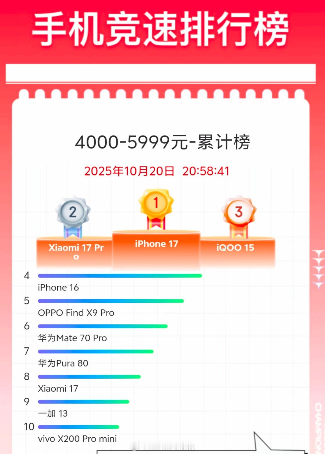 直接干到了京东4000-5999销量累计第三,仅次于iPhone 17和小米17 Pro,注意是累计。