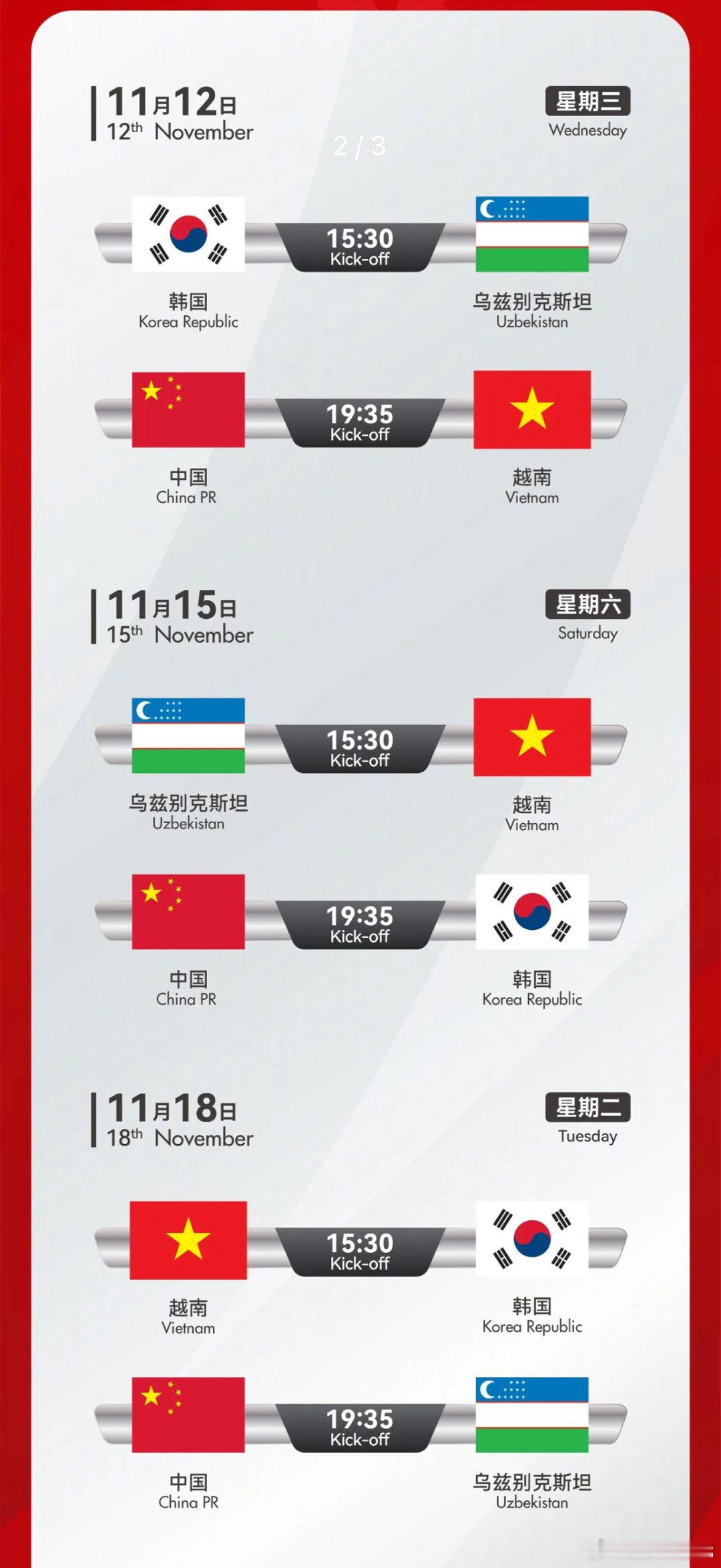 11月18日 19:35:中国 vs 乌兹别克斯坦(双流体育中心)