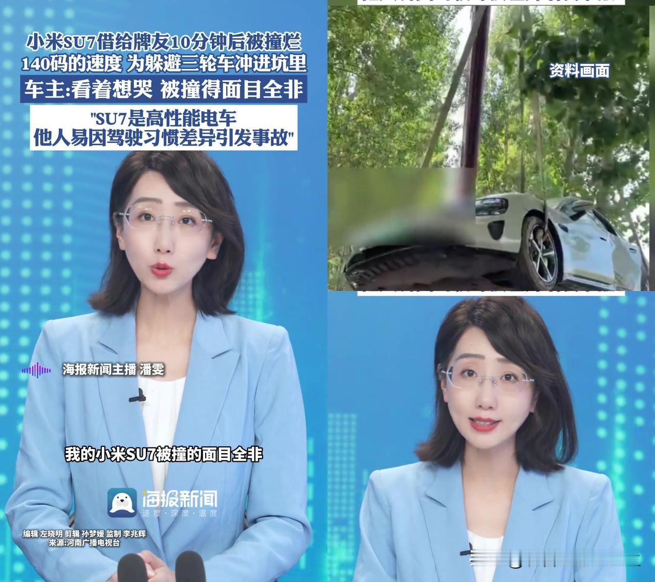 刚买不到一年的小米SU7,借牌友10分钟就撞烂,车主想哭,大家居然都喊他谢牌友? 马先生的SU7才提没多久,借给牌友开10分钟,对方开140码躲三轮车冲进坑,车直接撞得面目全非,他说“看着都心疼得慌”。 主播说SU7是高性能电车,百公里加速2.78秒,驾驶习惯不一样特容易出事,这才懂140码为啥撞这么惨。 有人说“得谢牌友替你躲过一劫”,有人说“给牌友磕一个吧,没撞到人就是万幸”,还有人吐槽“140码也太疯了”。 本来觉得车撞了肉疼,可反过来想,要是自己开140遇到三轮车,万一没躲过去撞了人?车烂了能修,人出事才是真毁! 谁没借过东西翻车?我上次借闺蜜新口红被她弄断,气了三天,结果后来知道那支是假货。有时候坏事里藏着点侥幸糖,真是哭笑不得。 你们有没有过“本来要骂娘,回头一想幸亏没更糟”的事?比如借出去的东西坏了,却替你避了更大的坑?