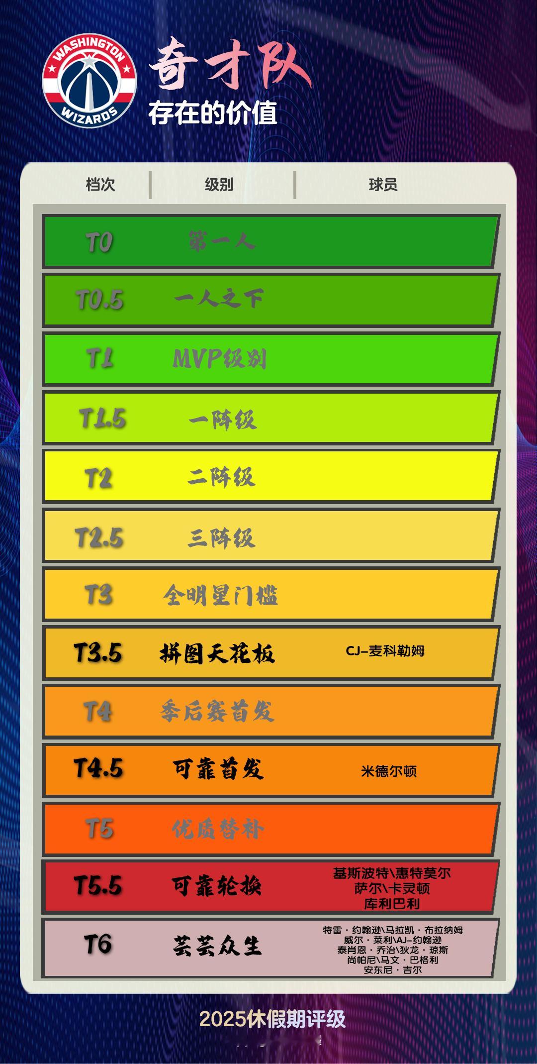 奇才拥有10名近4年的首轮年轻人,以及一大把次轮签,说他们人才济济,资源丰厚,那也是客观的。但如果你努力回忆奇才的选秀和新人培养,大多数时候,“奇才选的什么玩意儿”才是常态,他们上一次通过这种方式改变命运确实不算很近的事情。至于主角沃尔倒下并离开这支球队的方式再一次点题,暗示了奇才也是喜剧与悲剧的混合体。
