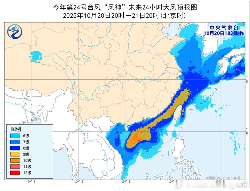 大风预报:20日20时至21日20时,东海西南部、台湾海峡、台湾以东洋面、浙江南部沿海、福建沿海、广东东部沿海、南海北部和中西部的部分海域或地区的风力有9-10级,阵风11-12级,台风中心经过的附近海域风力可达11-12级,阵风13-14级。