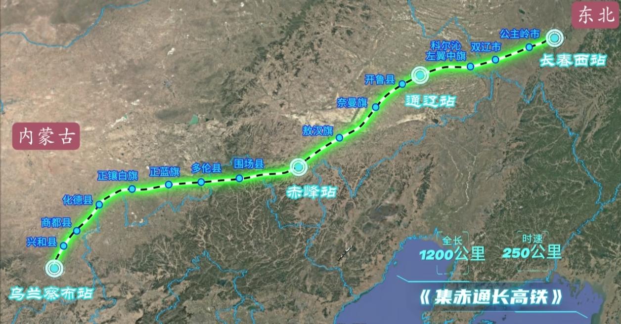 连接东北和内蒙古的集赤通长高铁来了!长春到通辽高铁东北高铁规划 起点于乌兰察布站。途经兴和县、商都县、化德县、正镶白旗、正蓝旗、多伦县、围场县、赤峰站、敖汉旗、奈曼旗、开鲁县、通辽站、科尔沁左翼中旗、双辽市、公主岭市,终点到达长春西站。全长约1200公里,设计时速250KM/h,总投资约1506亿元。集赤通长高铁是打通呼和浩特-赤峰-长春的横向大通道,内蒙高铁 目前项目正在积极推进中,待全线建成后,长春不用再绕行北京,最快6个小时便可到达上呼和浩特了,那么此条线路有经过你的家乡吗?