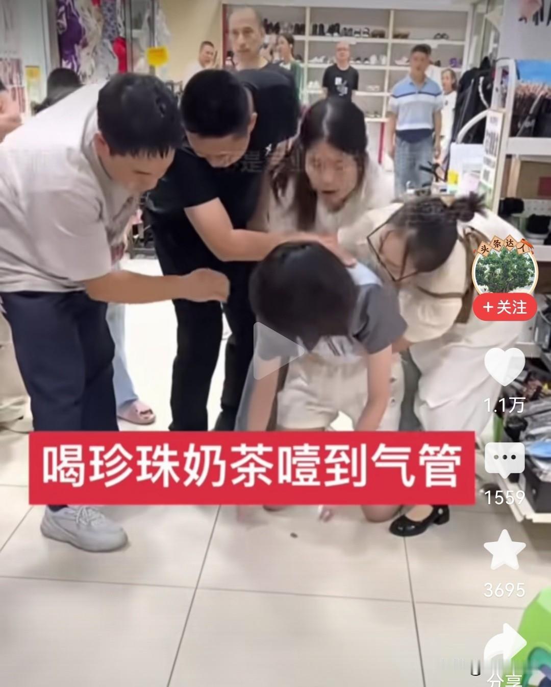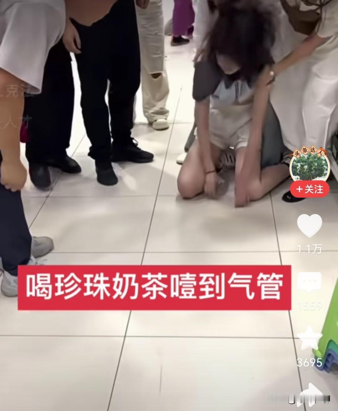 太可怕了,谁能想到,喝个奶茶都能差点一命呜呼。看图片中这个女孩,喝奶茶时不小心把珍珠吸到了气管,人一下就瘫软在地,晕厥过去了。 幸好周围有人懂得使用海姆立克急救法,经过不懈地抢救,最终女孩把卡在气管的珍珠吐了出来,真真挽救了一条鲜活的生命。(图片来自网络)奶茶异物事件 饮品中毒 珍珠奶茶吸管 晕厥窒息 女童被噎身亡