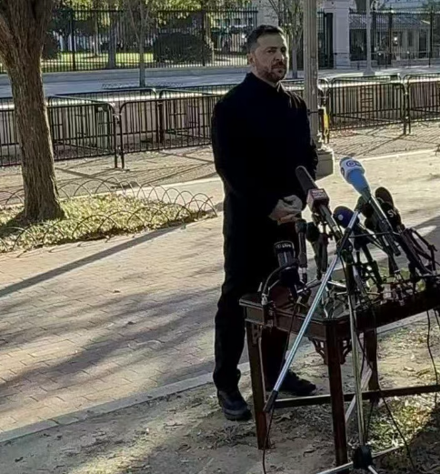 没办法,泽连斯基就在白宫马路对面摆了一张小桌子,冒充在白宫进行了记者会。