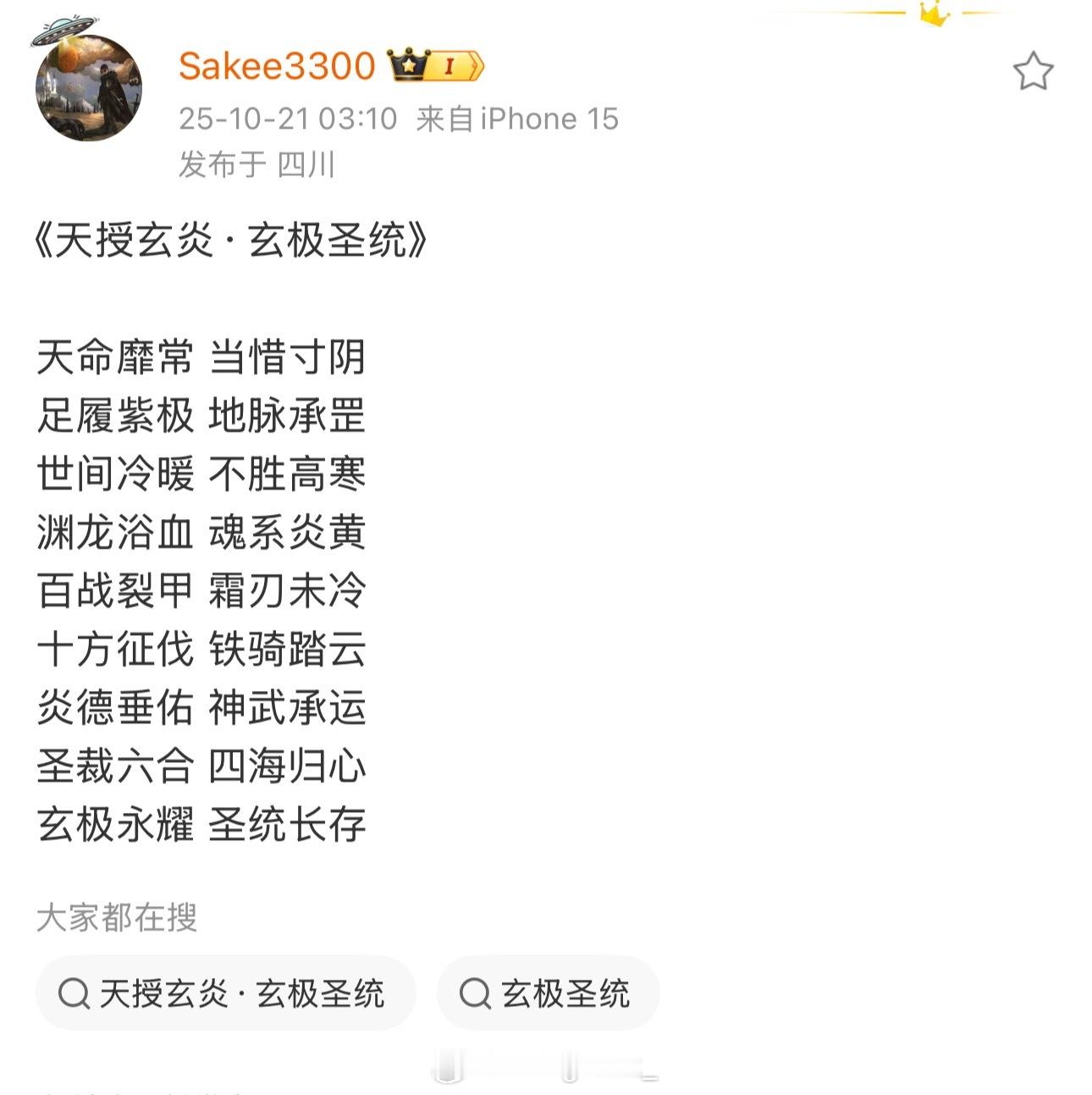 上早朝了!Sakee发布《天授玄炎·玄极圣统》
