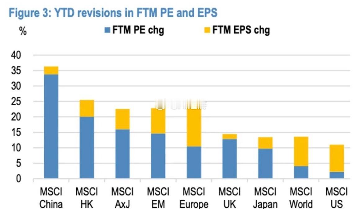 MSCI中国指数的远期市盈率在年内扩张超过30%,而同期的远期每股收益(EPS)增长则出现停滞(从7月初的5.8%下调至1.6%),显示估值拉升已部分脱离基本面支撑。这一背离是机构持谨慎立场的核心原因。