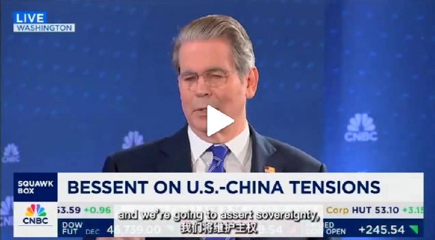 美国财政部部长贝森特:特朗普总统正在维护美国主权,并带领我们的盟友共同抵制中国的
