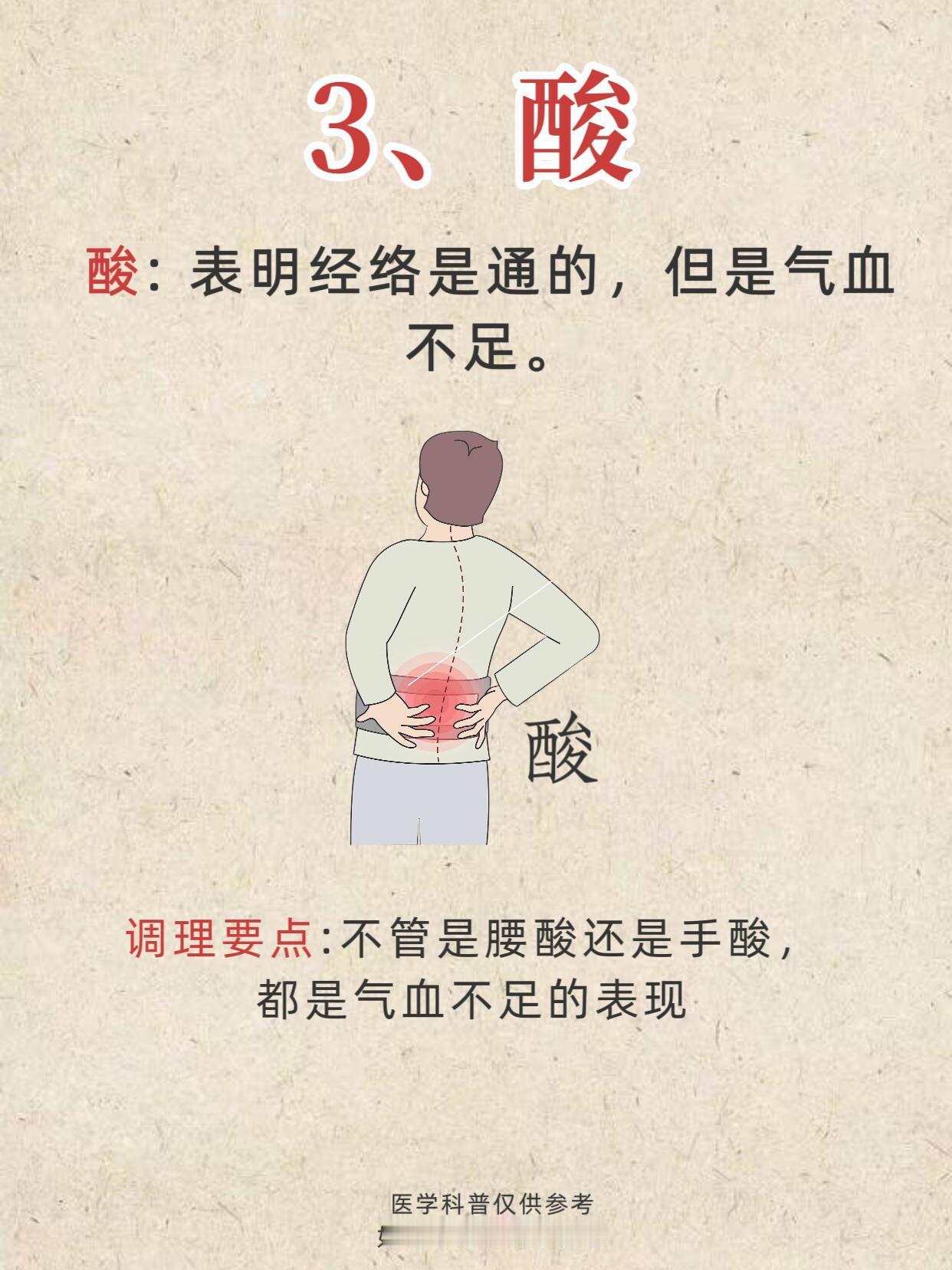 调理要点: 不管是腰酸还是手酸,都是气血不足的表现