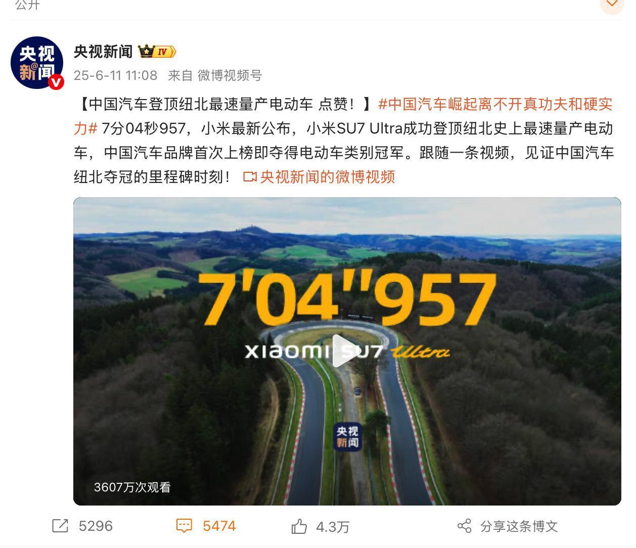 央视新闻再次发文,肯定小米汽车在新能源与智能网联领域的贡献,积极推动汽车强国的建设和汽车产业发展!这不是第一次小米受到表扬了,比如V8S电机,德国纽北赛道成绩等等,小米凭实力技术获得国内,包括福特CEO的认可!别的车企卷价格,只要卖不动就频繁降价,伤害老车主权益,还在网上打口水战,对用户没有实际意义,而小米坚持卷技术,还赞助CEC,为车主举办安全驾驶培训等等,推动中国汽车文化发展这块,小米实打实做了贡献