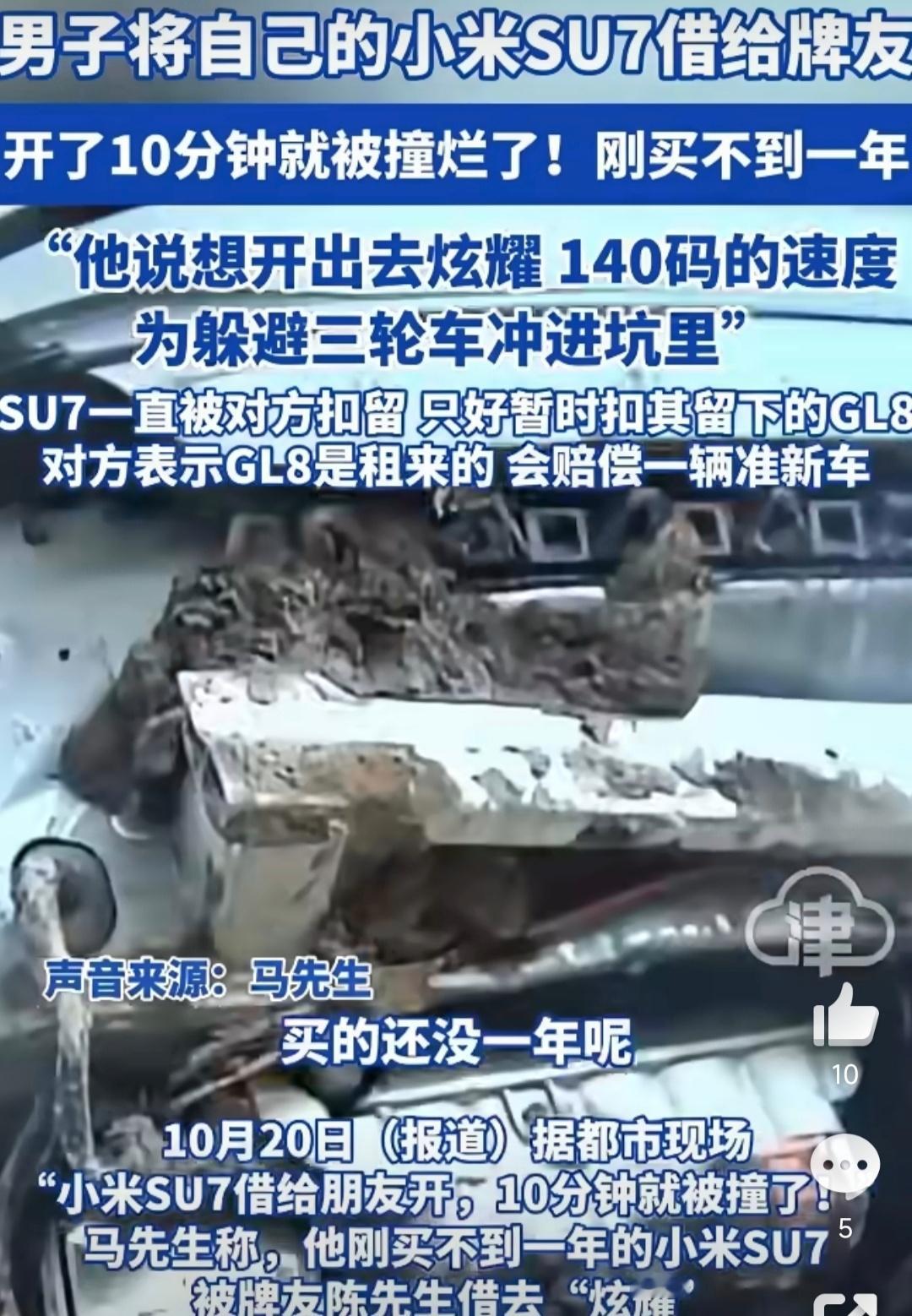 小米SU7借朋友开10分钟被撞烂